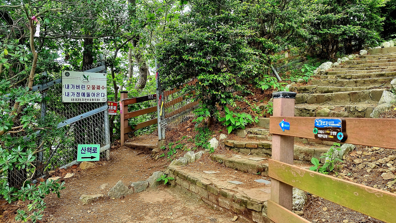 노래가 끝날 즈음 나뉘어졌던 길이 합쳐지고 조금 후 철망이 나타나는데, 걷는 방향으로 직진해야 갈맷길로 이어진다.