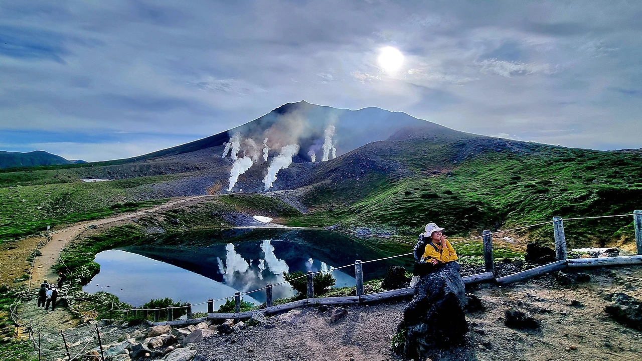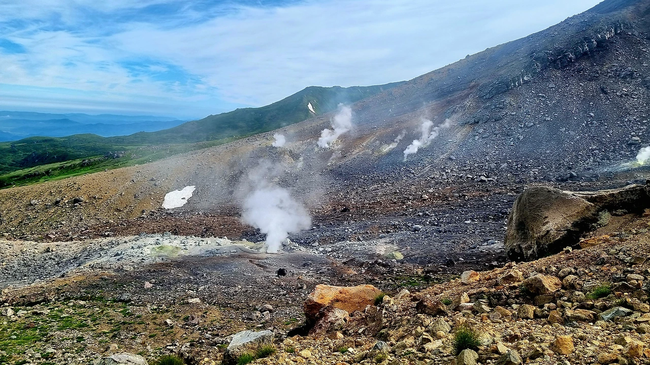 유황 가스를 뿜어내는 아사히다케가 눈앞에 펼쳐졌고, 땅속 깊은 숨결이 대지로 피어오르는 풍경에 숨이 멎는 듯했다.