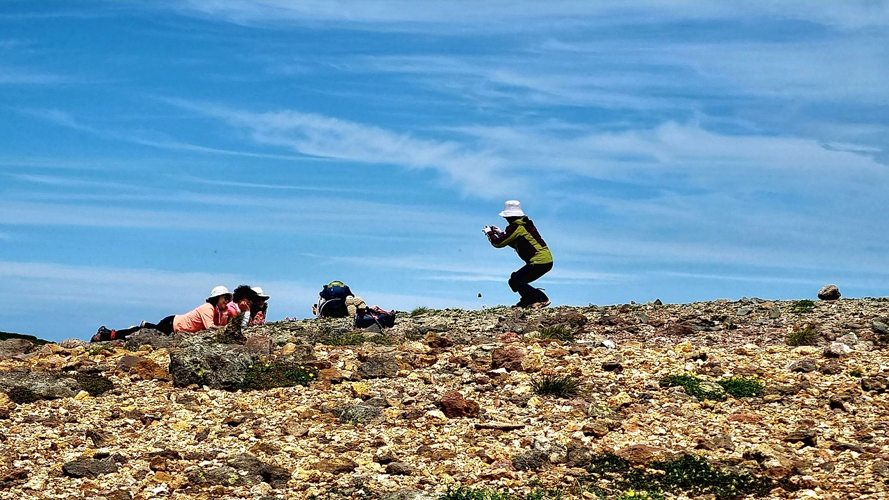 등산로는 자연 그대로의 돌들이 흩어져 있었고, 그 사이를 우리는 조심스레 걸었다. 한 시간 반 뒤의 목적지인 마미야다케를 향해.