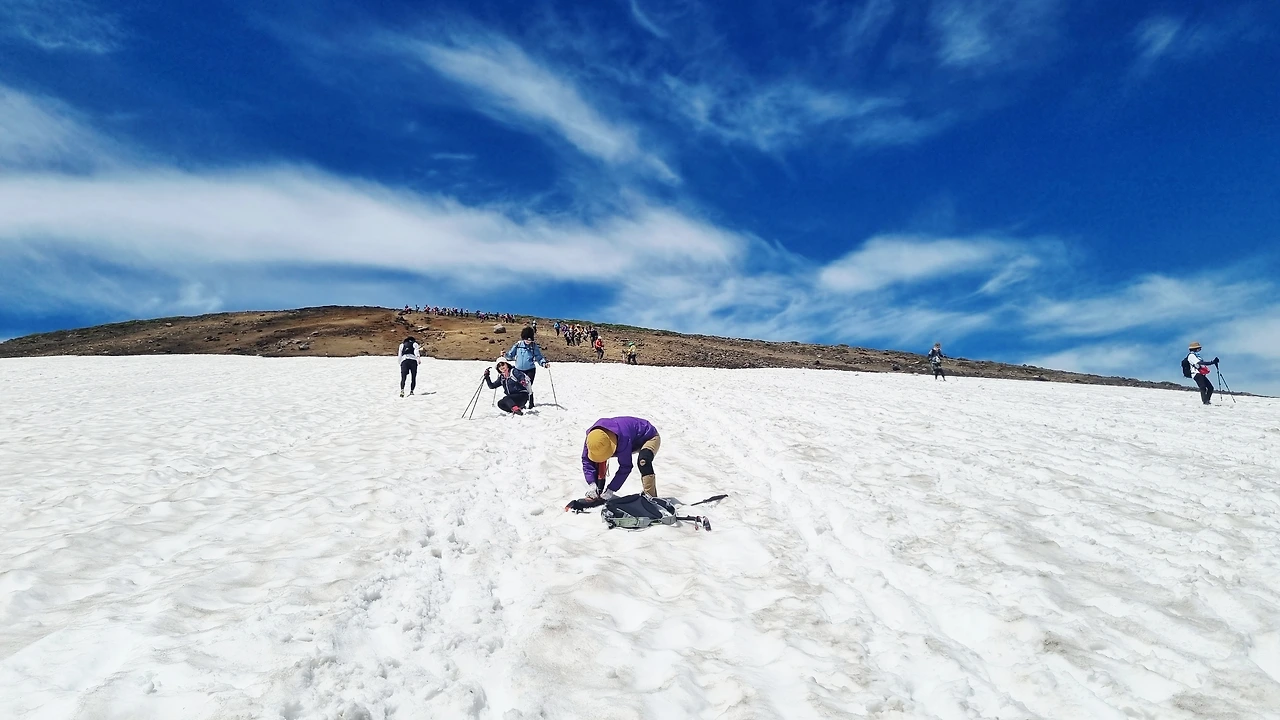 잠시 후, 길 위로 하얗게 펼쳐진 설원이 나타났다. 7월의 한복판에서 만난 눈.