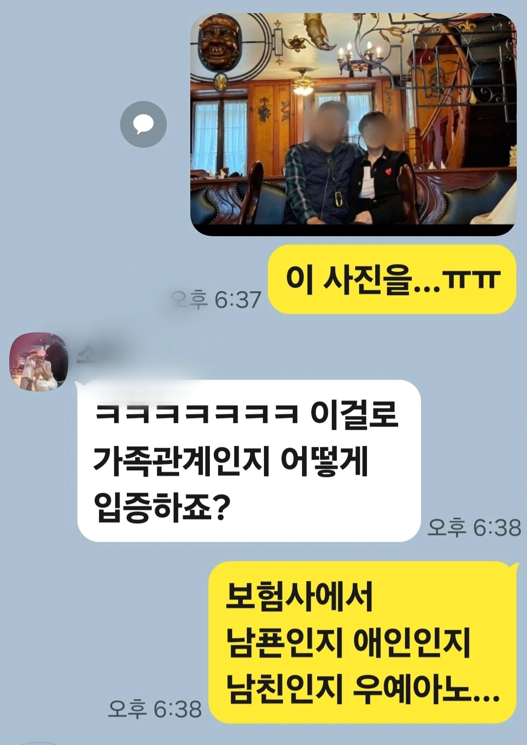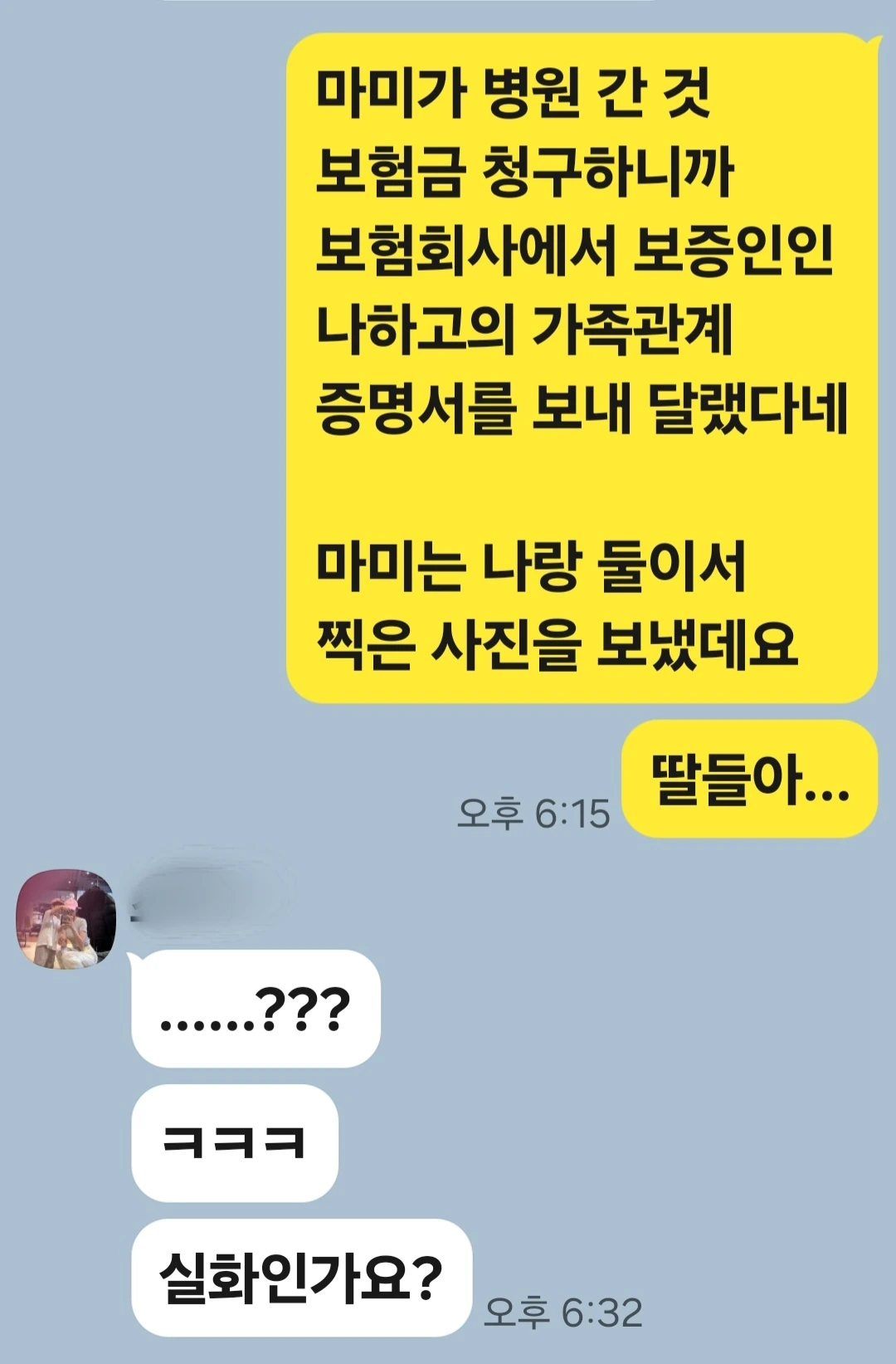 그짜서 보험금 대리 청구인 남편 싸인과 가족관계증명서를 사진 찍어 보내라 했답니더