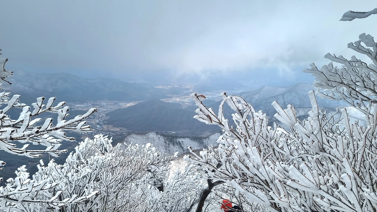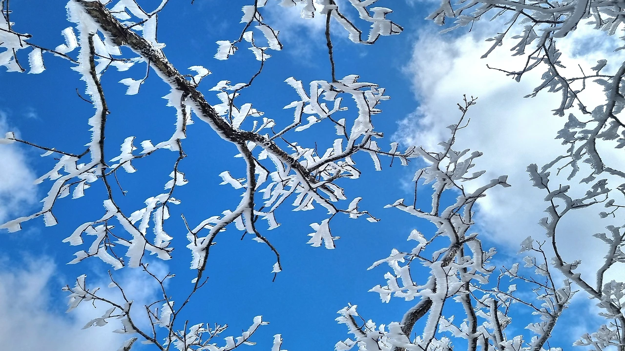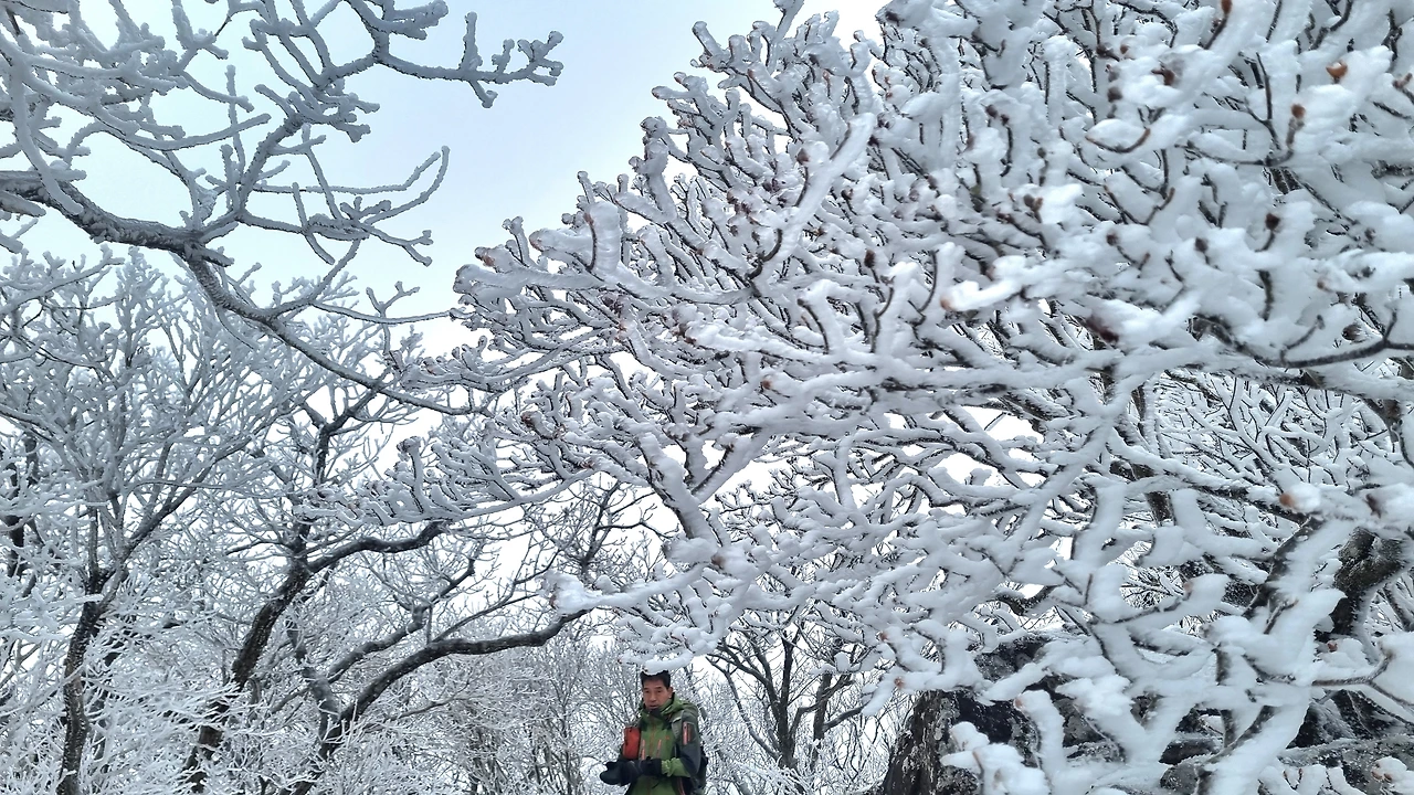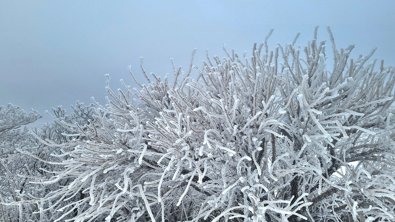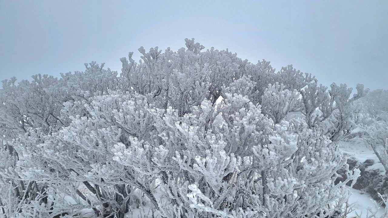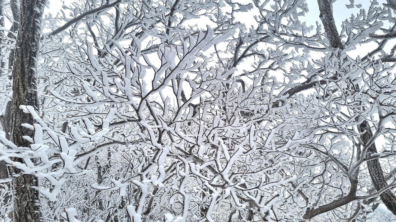 등산로 중턱에 있는 육백여 개의 나무계단을 올라서자 눈꽃, 설화, 상고대의 절경이 펼쳐졌다.
