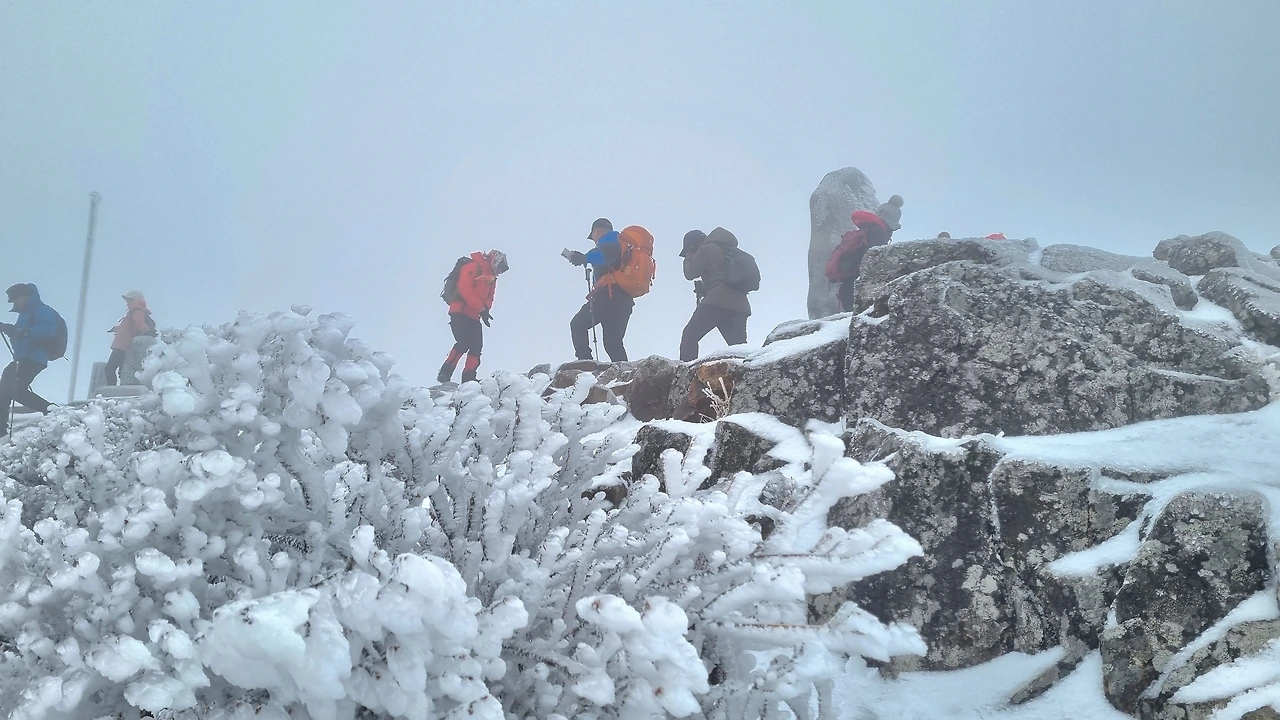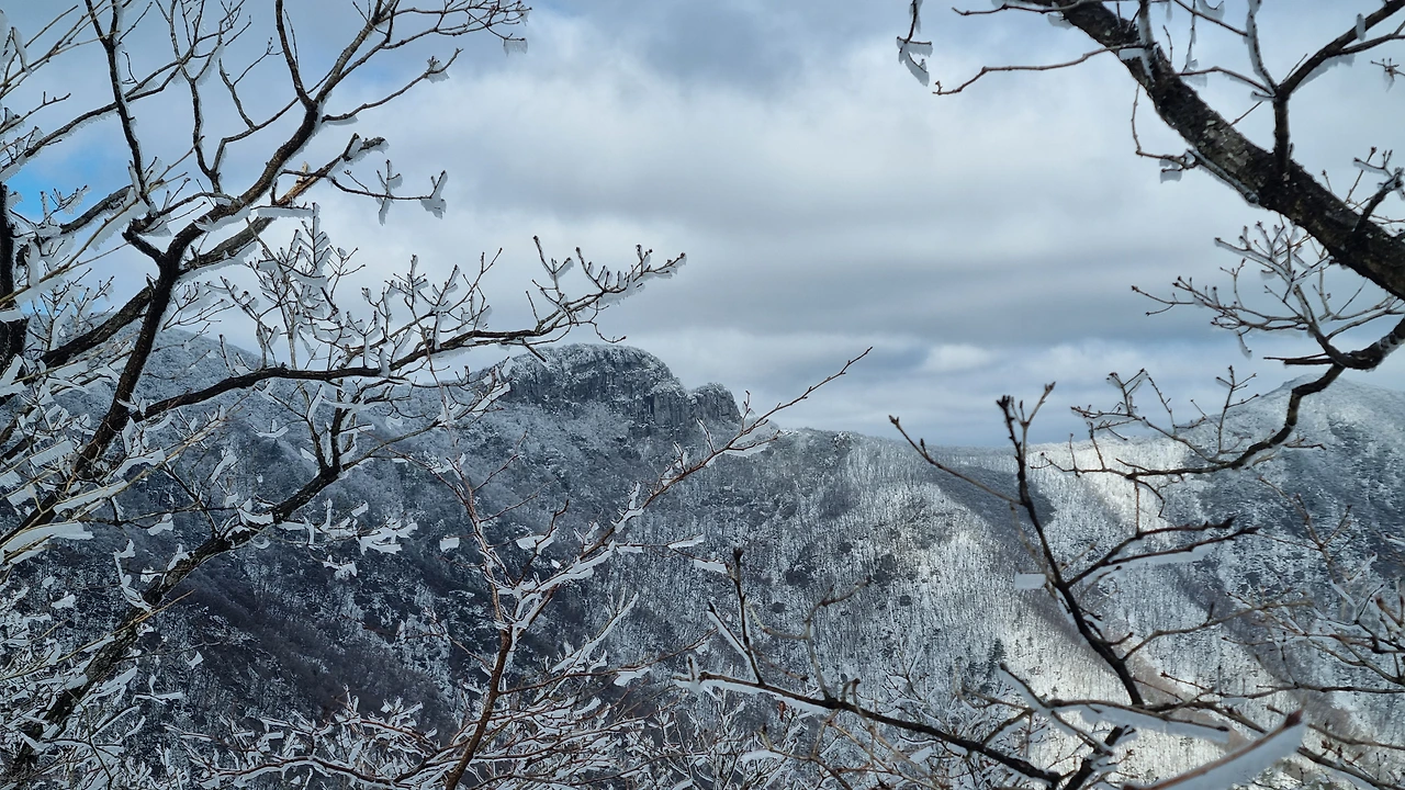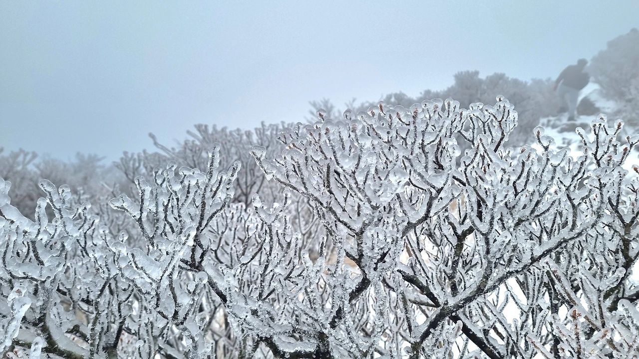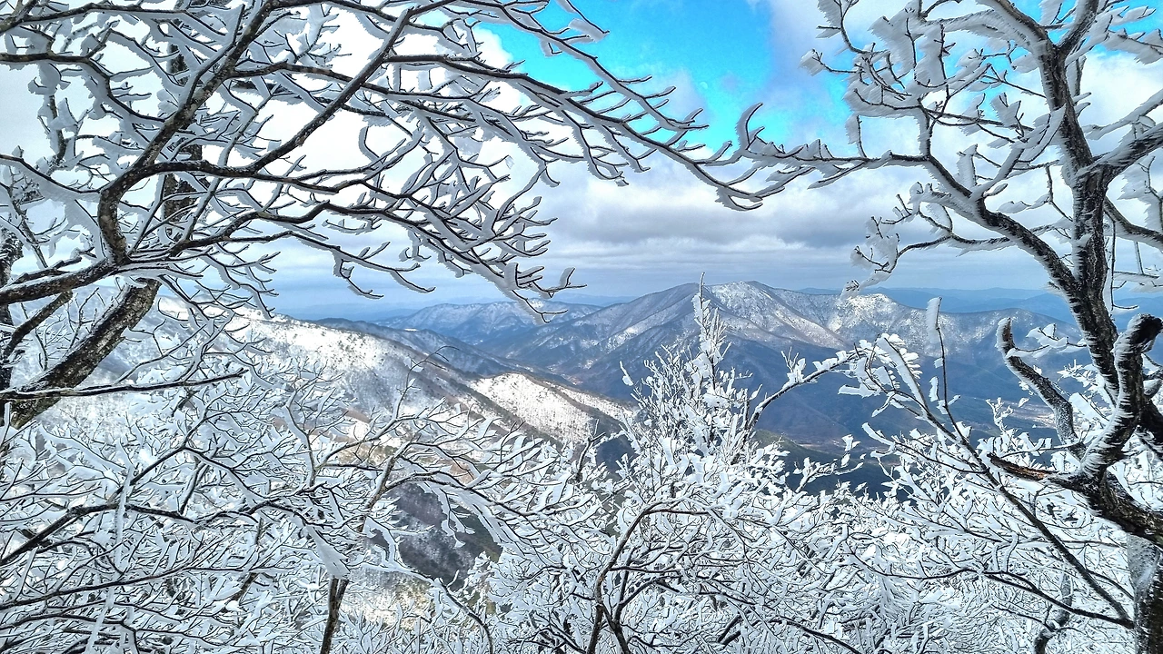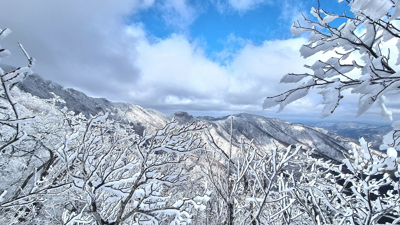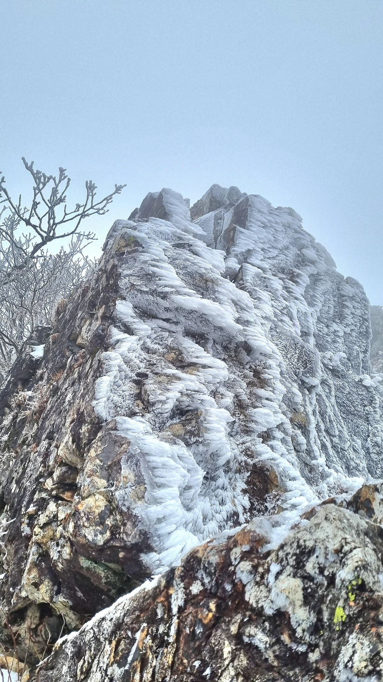 등산로 중턱에 있는 육백여 개의 나무계단을 올라서자 눈꽃, 설화, 상고대의 절경이 펼쳐졌다.