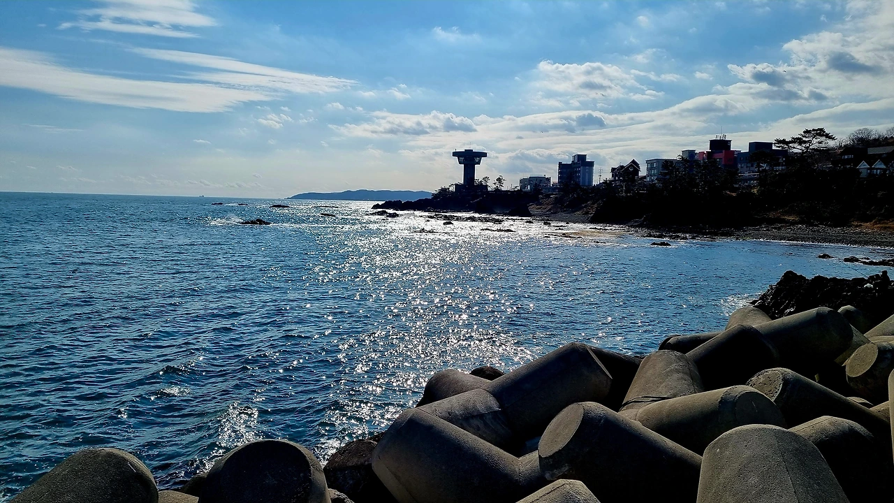 올 때 오른쪽에 보였던 바다가