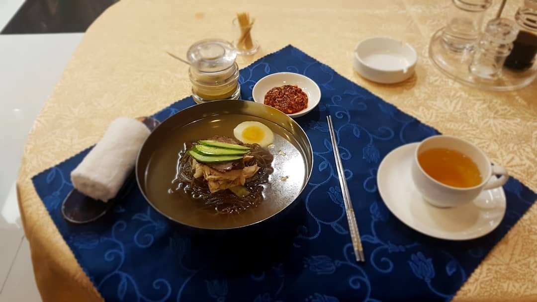 평양에서 파는 '진짜'평양냉면'뭐야 하나도 안 싱겁네.' 냉면의 육수는 심심한 맛이 아닌 간이 잘 되어 있었다. 면발도 뚝뚝 끊기는 면발이 아닌 오히려 칡냉면과 같은 느낌의 탄력이 있는 면발이었다. 평소 모든 음식을 싱겁게 먹지만, 평양냉면보단 함흥냉면이 더 맛있다고 생각하던 나는 한국에서 불고 있는 평양냉면 열풍과 '평양냉면의 심심한 맛이 좋다'라며 호들갑스럽게 말하던 지인들을 떠올라 괜스레 웃음이 나왔다. '역시 오리지널을 먹어봐야...'