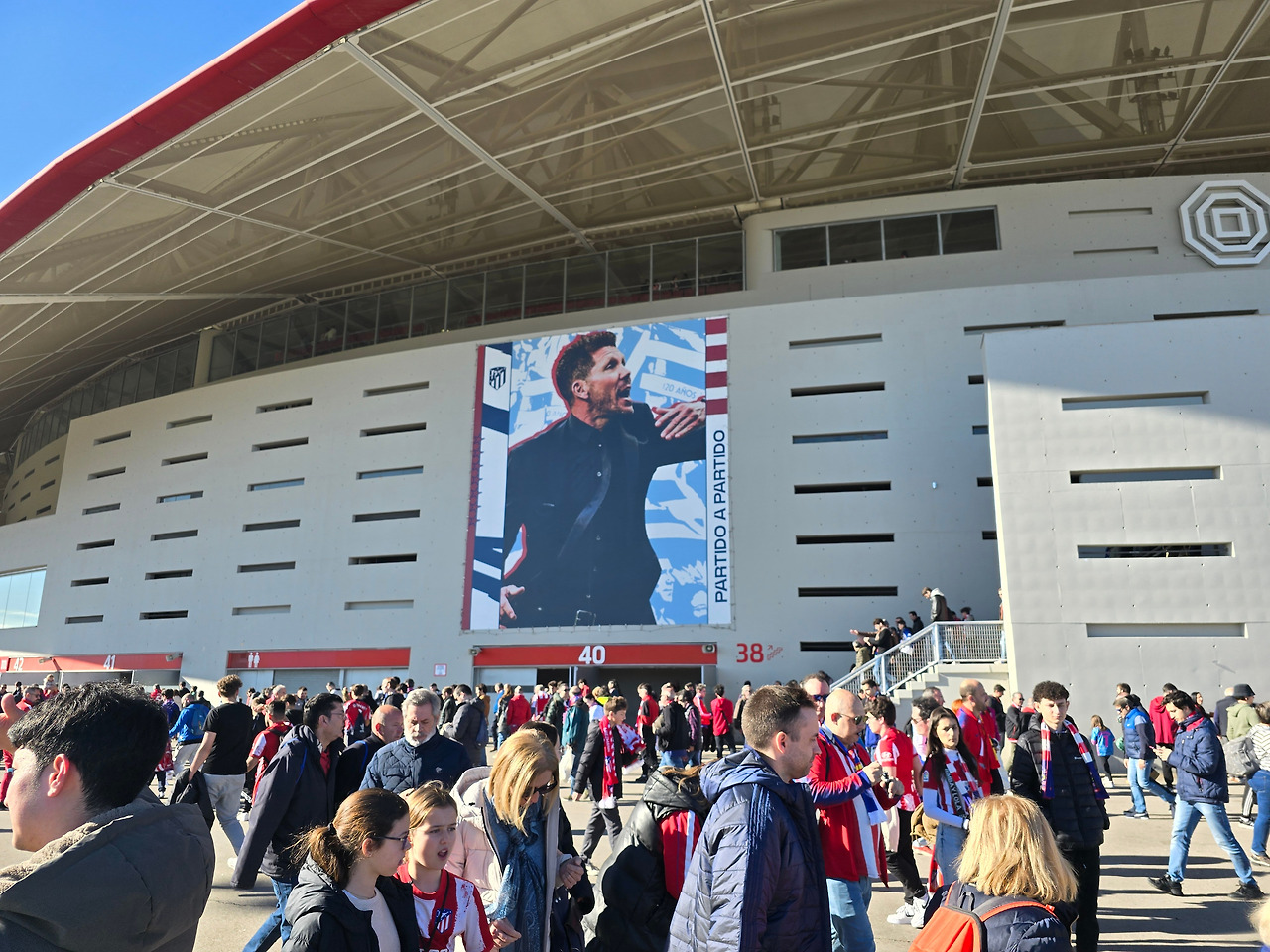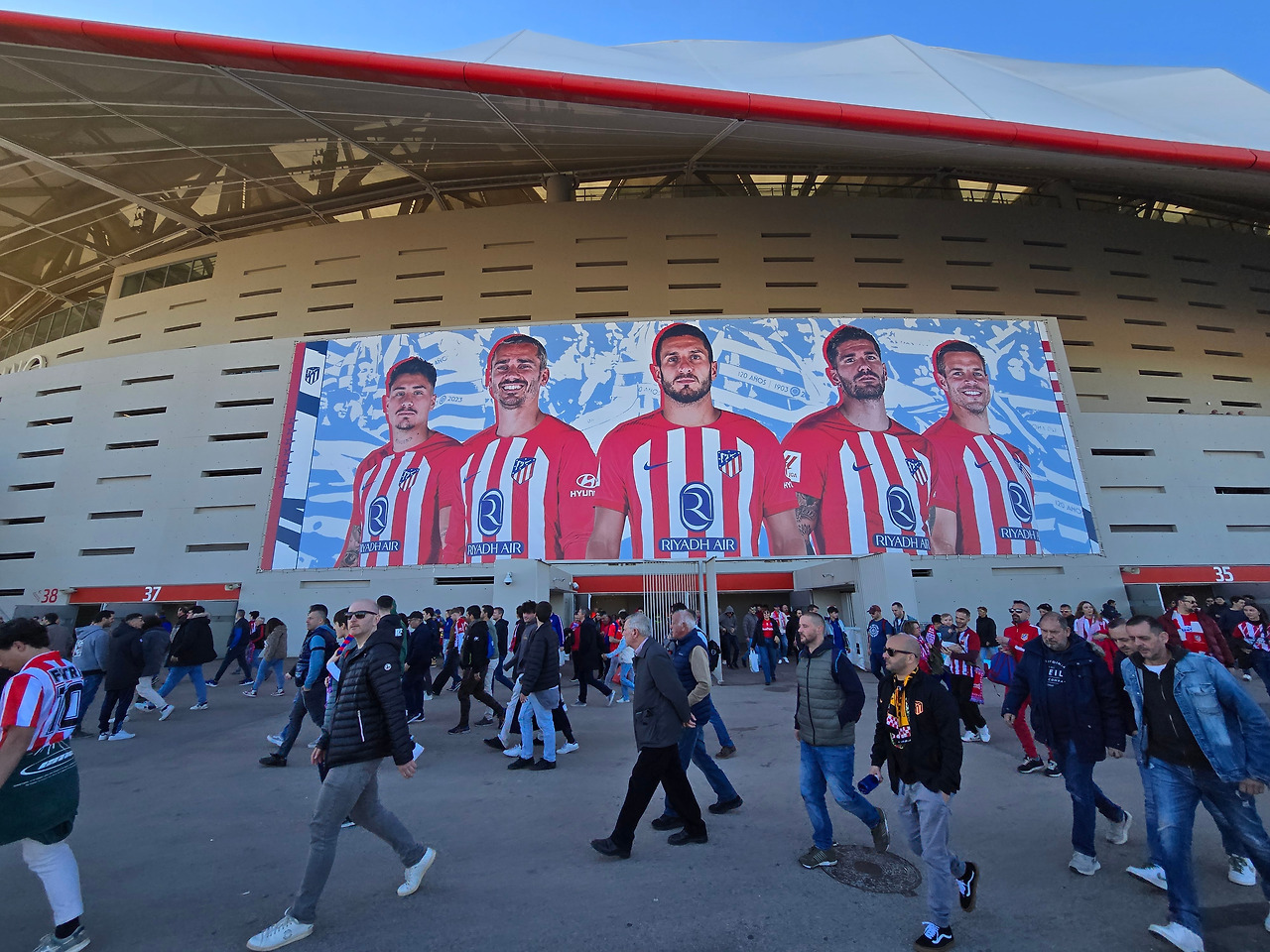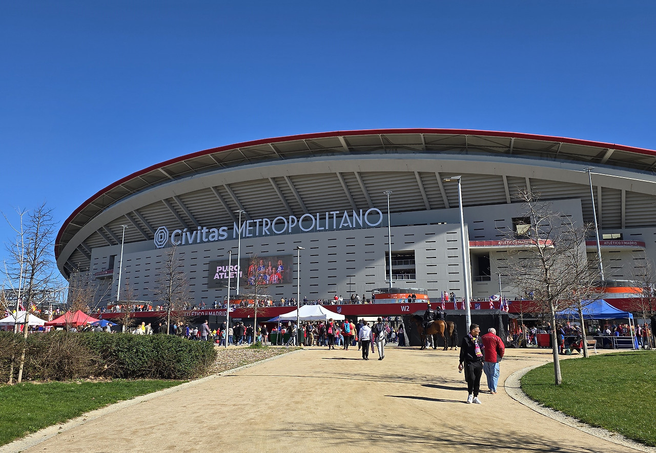 경기장 외부에는 AT 마드리드의 감독 시메오네와 그리즈만 등 축구 팬이라면 누구나 알 만한 감독과 선수들의 사진이 크게 걸려 있었다. 2월의 스페인 날씨는 패딩을 입을 만큼 쌀쌀했지만, 강한 햇살에 양지에서는 따뜻함을 넘어 뜨거움을 느낄 정도였다.