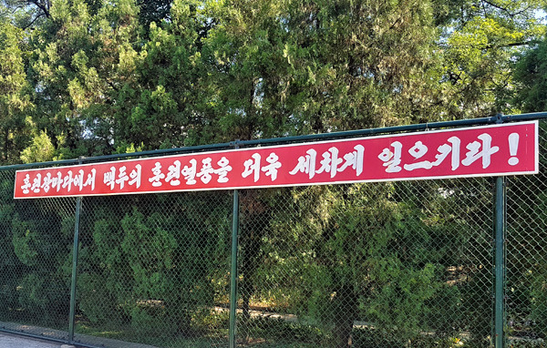 '훈련장마다에서 백두의 훈련열풍을 더욱 세차게 일으키라!' 북한 4.25 체육단 보조구장