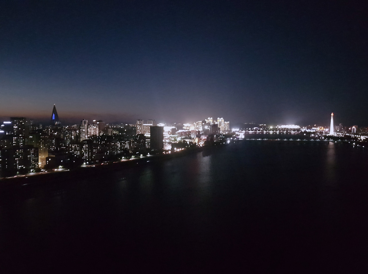 호텔 위층 방을 배정받은 우리의 객실은 대동강을 향해 창문이 있는 ‘리버뷰’의 객실이었다. 무난하지만 오래된 벽지와 침대 그리고 인테리어를 무시하고 바로 창문 커튼을 열었을 때 눈앞에는 평양 시내의 야경이 눈에 들어왔다. 처음 평양의 야경을 보게 된 나는 생각했다. ‘전력난이 사실이구나.’