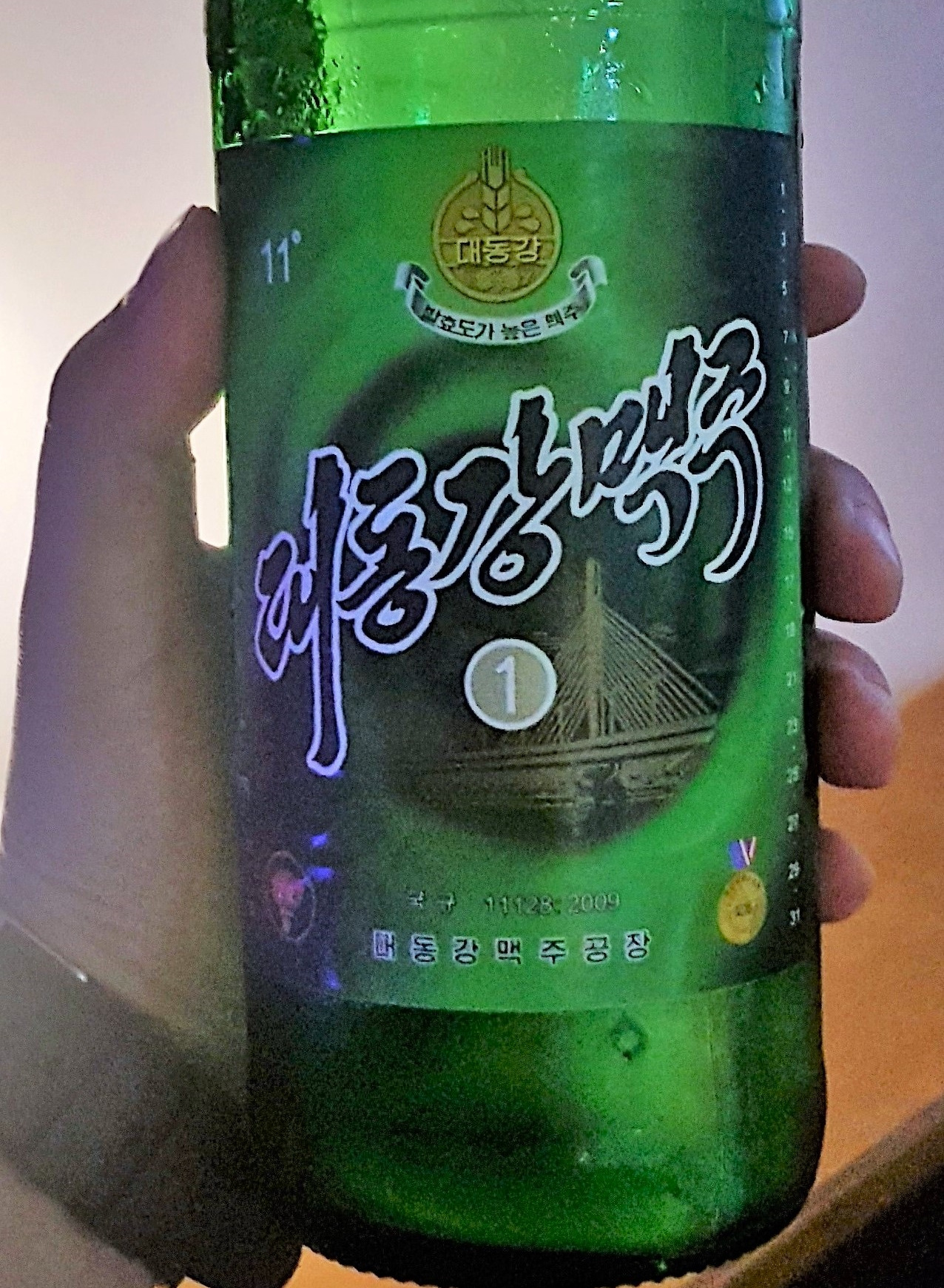 북한의 대표 맥주 '대동강 맥주' 보리 함유량에 따라 가운데 번호의 숫자가 달라진다.