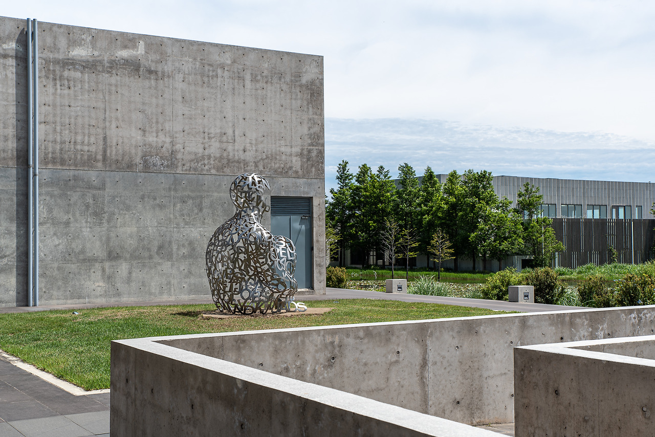 입장하기 전, 주차장 옆쪽으로 위치한 넓은 연못에 눈길이 간다. 파동 하나 없는 수표면은 고요함을 유지하며 푸른 하늘과 그 아래에 있는 박물관의 외관을 자연스레 담아낸다. 파란 우주 속에 떠 있는 듯한 부유감이 감돈다. 물의 반사 성질은 물성이 갖는 무게감을 가벼움으로 환기시킨다. 건축가의 의도가 담백하고 단순하게 표현되는 것은 대단히 정교한 설계와 많은 어려움을 극복한 결과일 것이다. 따라서 무언가가 우리의 눈에 균형 잡힌 형태나 단순함으로 읽힌다는 것은 만든 이의 높은 경지를 보여주는 하나의 증거가 된다.