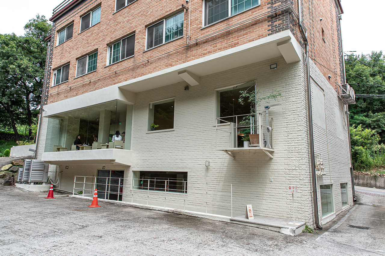주위의 건물들과 환경에 어울리는 외관이다. 이질적인 독특함 대신 조화와 어울림을 선택한 결과이다. 자연스럽게 그늘진 외부 공간은 잠시 들렀다 가거나 바람을 쐬기에 좋다. 깔끔하게 마감된 페인트칠과 로고, 기둥이 갖는 직선의 안정적인 구조감과 넓은 통창이 자연스레 어울린다. 내부 공간에 대한 궁금증이 자연스레 샘솟는다. 성공적인 첫인상이다.