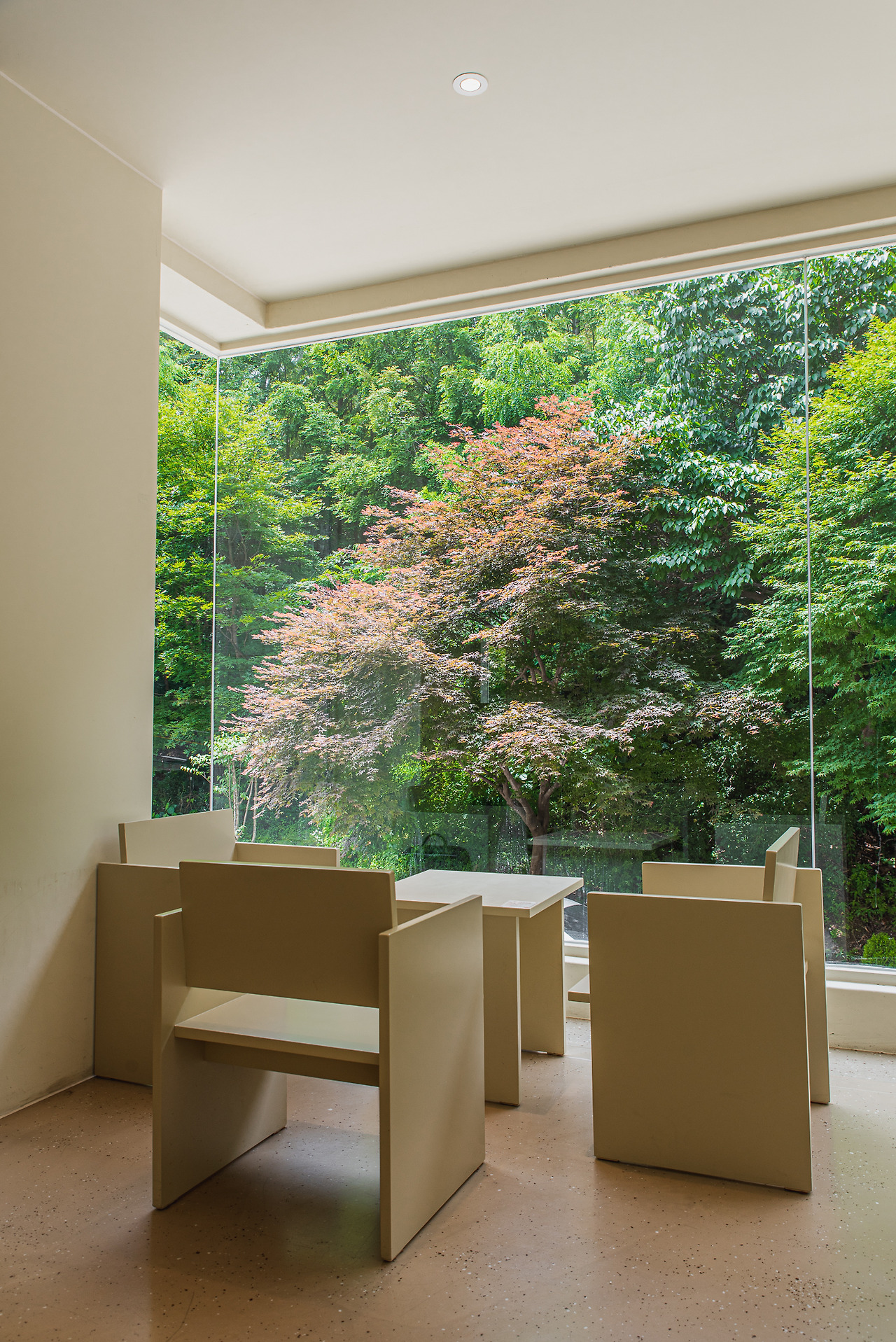 창을 내어 자연을 담는 액자로써 공간을 활용하는 방법은 자연 그대로의 모습을 즐기기에 좋고, 4계절의 변화가 공간의 이미지에 영향을 주는 특징을 갖는다. 봄의 풋풋함과 여름의 녹음, 가을의 낙엽과 겨울의 눈으로 바뀌어가며 우리가 느낄 수 있는 감상은 다채로워진다. 그럼에도 잘 짜인 내부의 모습은 정돈되어 흐트러지지 않는다. 방문한 사람들을 언제든 눈앞의 자연으로 안내하는 역할을 하는 것이다.