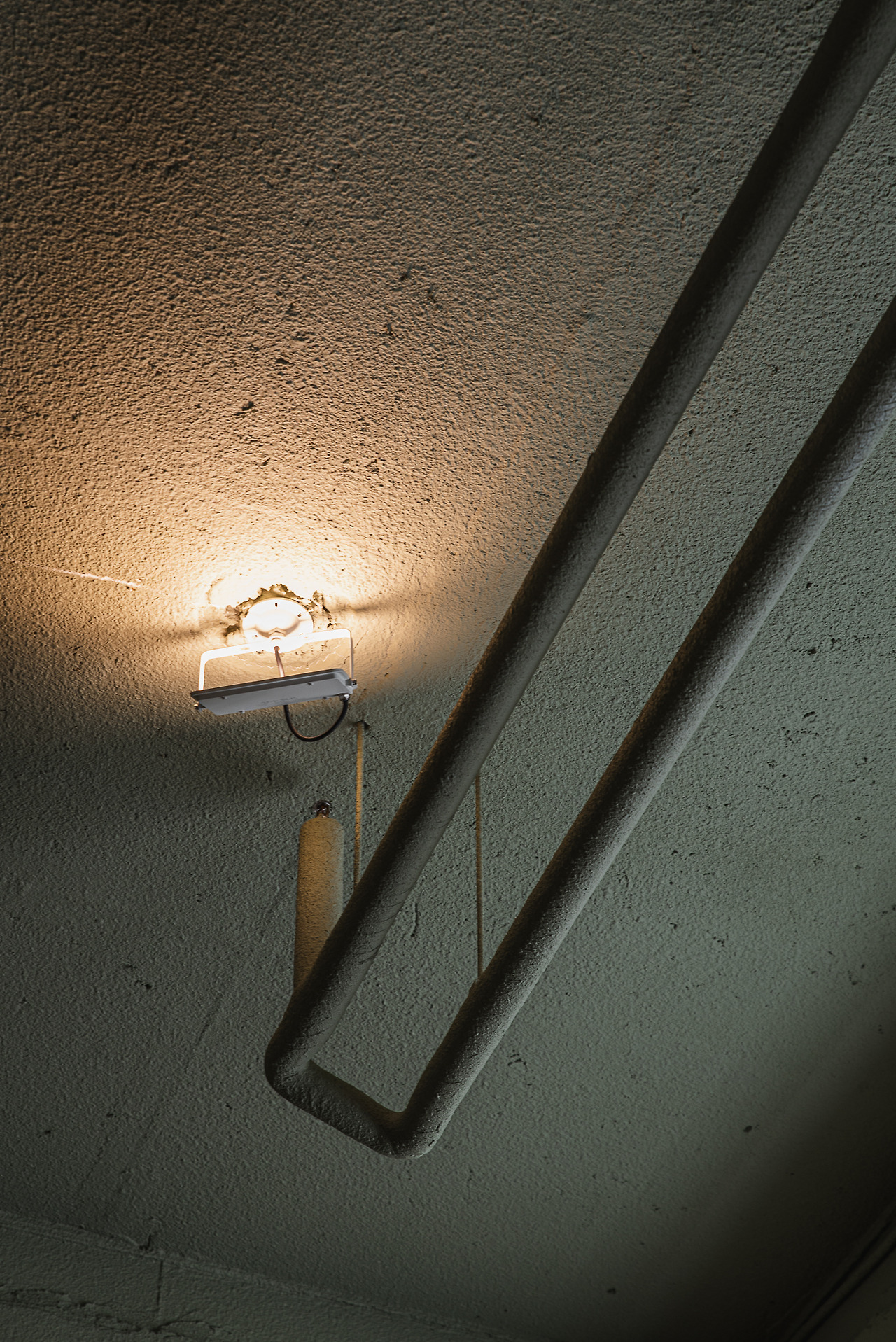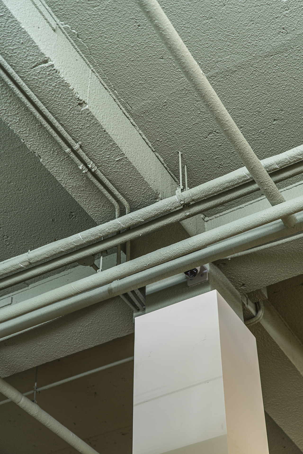 넓은 공간에 다양한 형태의 선(線)들이 교차하며 만들어내는 독특한 구도와 이미지에 시선이 간다. 빛이 들어오는 방향에 자연스레 집중이 되고, 천장의 파이프 구조들은 그대로 드러나있지만 크림색의 페인트칠로 꼼꼼하게 마무리된 모습이다. 공간의 개성이 완성도 높게 표현되고 있는 지점이다.