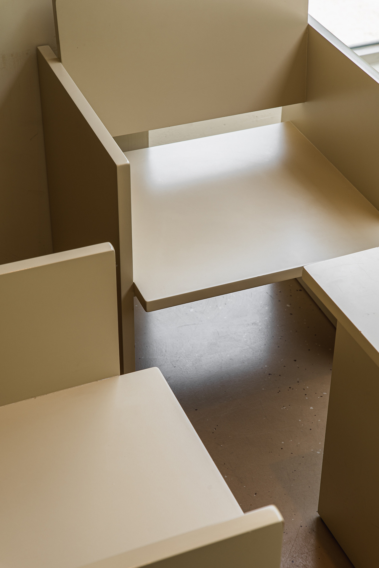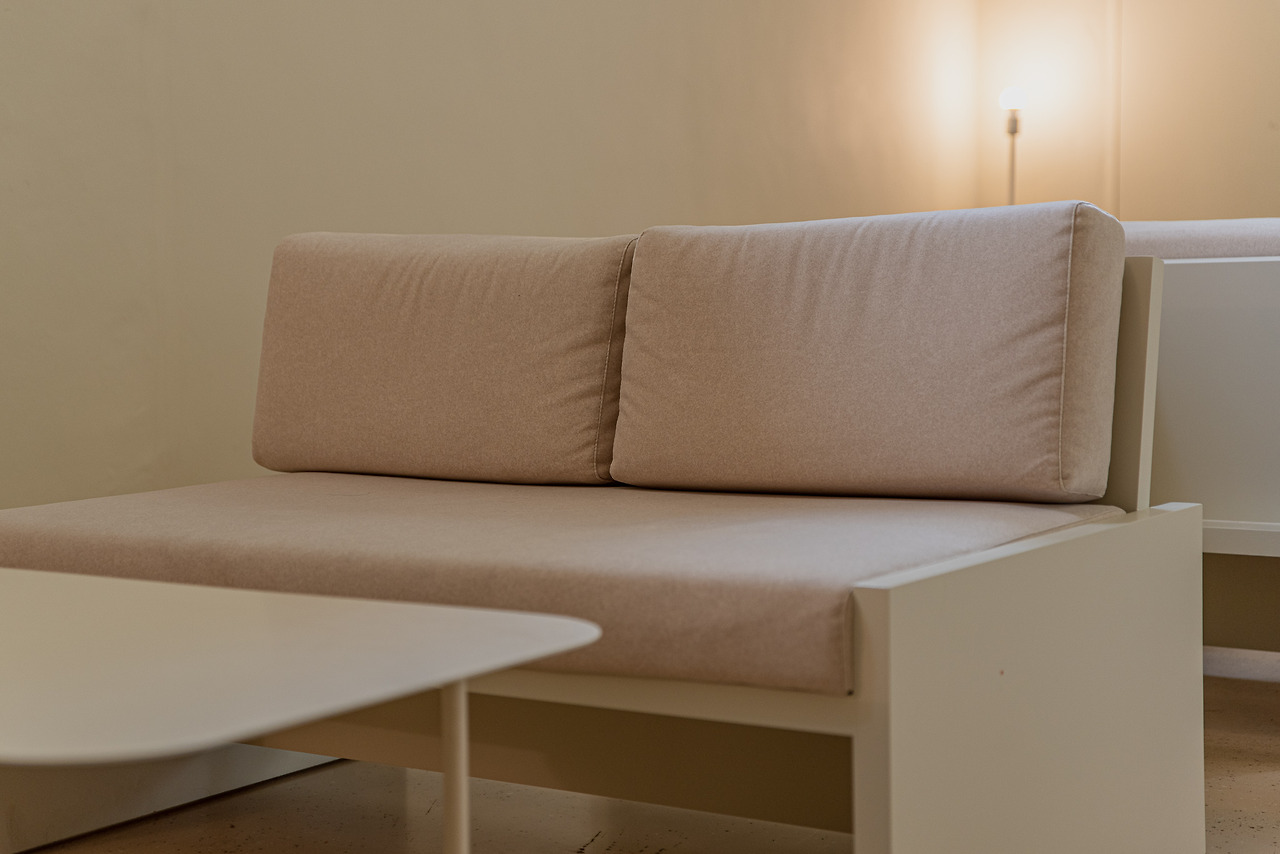 벽면과 기물 등이 크림색으로 전체적인 톤을 유지한다. 주장이 강하지 않은 색과 깔끔한 질감이 돋보인다.