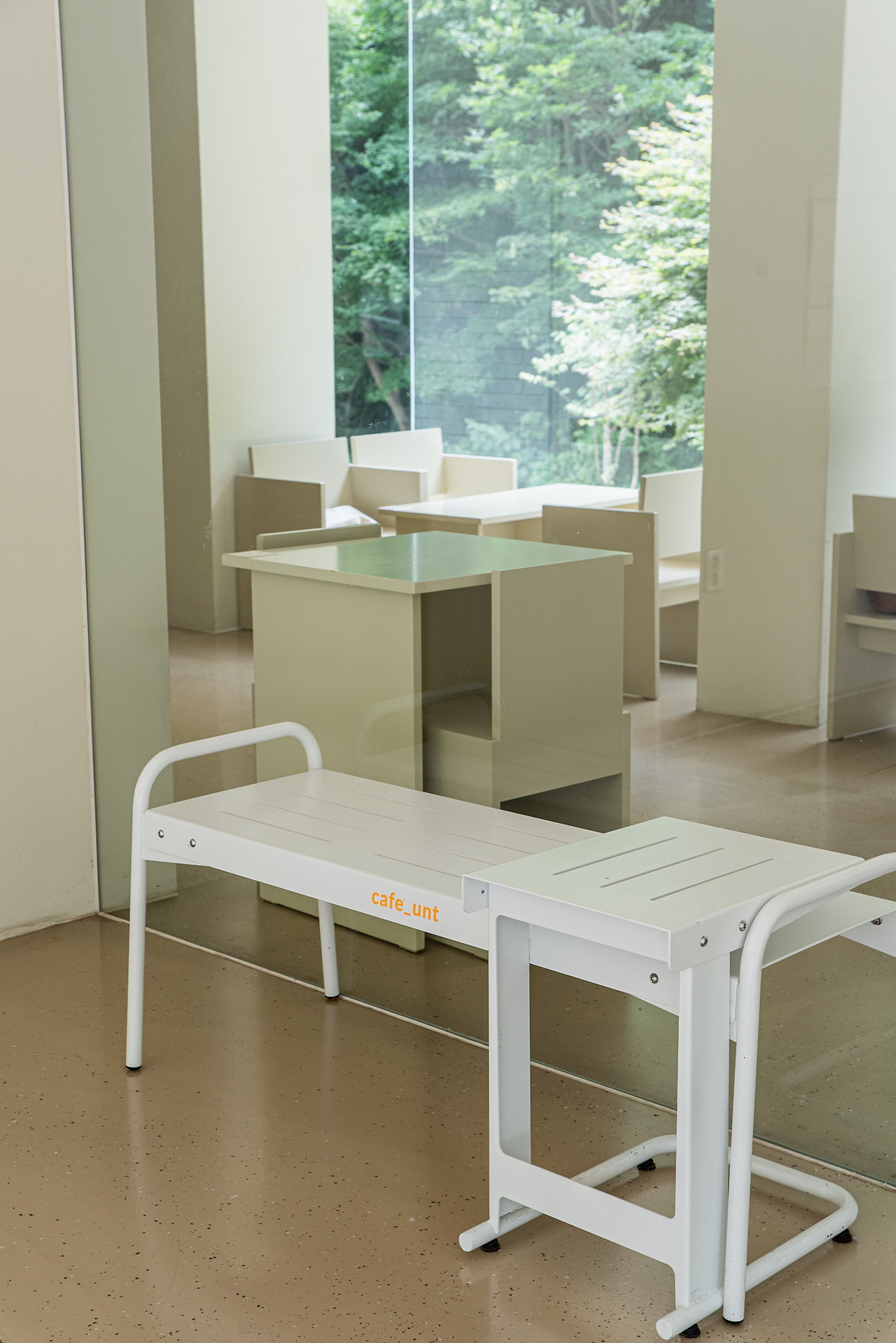 반면 테이블과 의자의 디자인, 주황색의 텍스트 같은 디테일들에서 엣지 있는 개성이 드러나기도 한다.