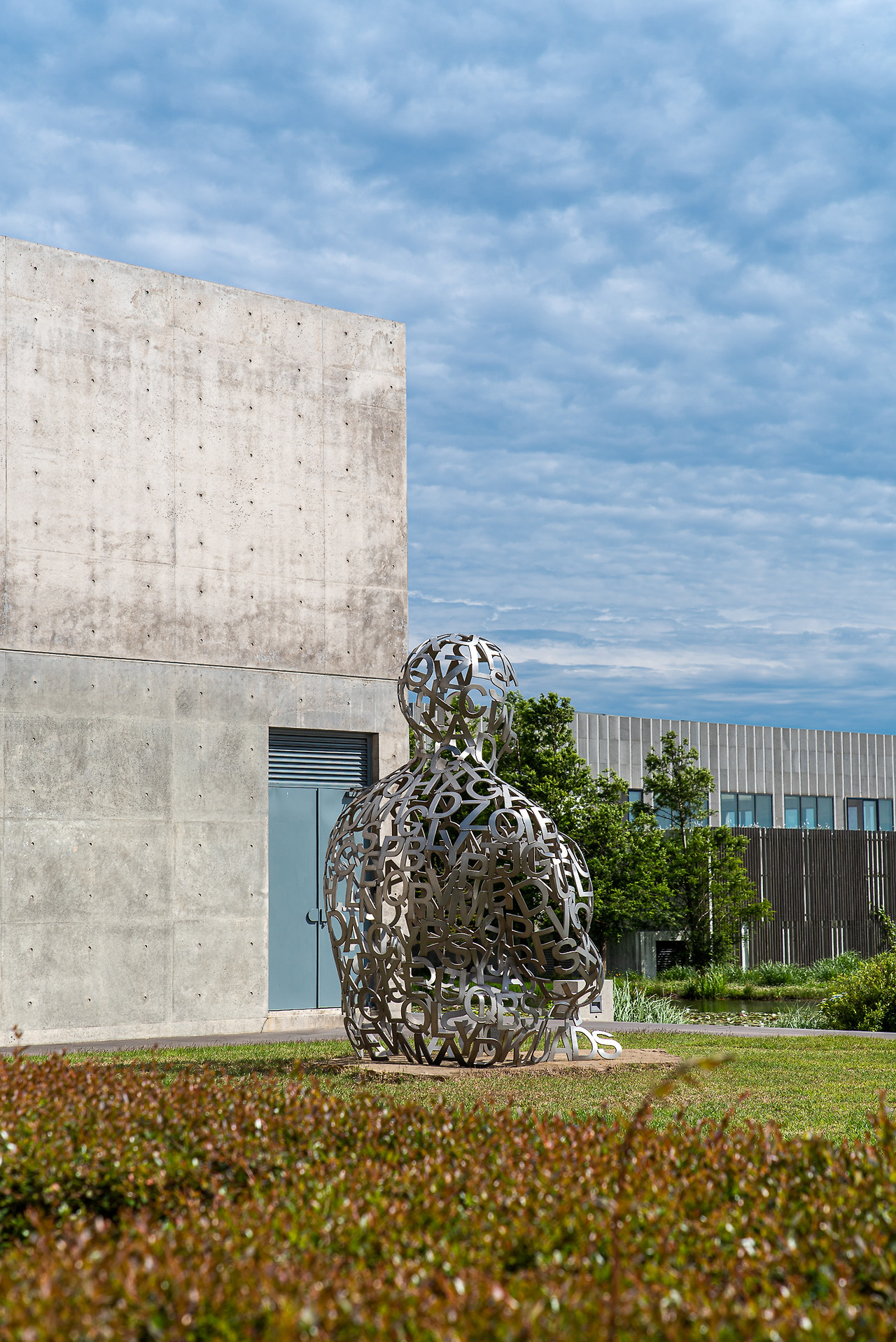연못에 인접한 테이블은 야외 분위기를 즐기기에 좋다. 뒤쪽엔 데이비드 걸스타인의 <Euphoria>라는 작품이 있다. '행복감'과 관련된 뜻을 가진 작품은 조성된 자연환경과 어울리며 긍정적인 기운을 전달한다.