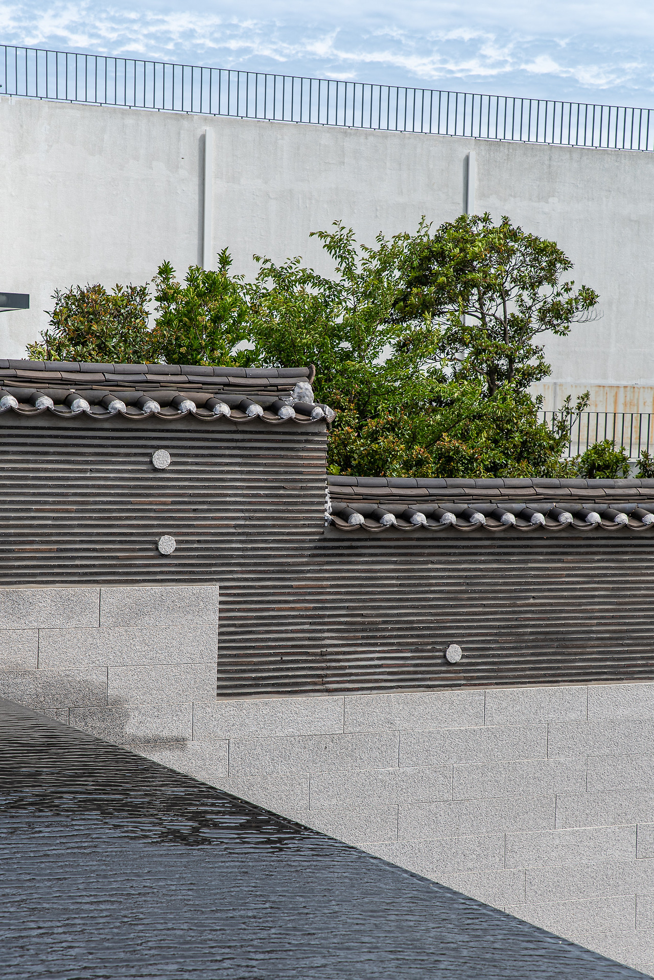 콘크리트의 크기와 재질에서 오는 무게감을 가벼이 표현해내는 물의 표면에 가까이 다가갈 수 있음이 특징적이다. 그렇게 발 밑부분에서 일어나는 무거움과 가벼움의 교환을 목격하고, 분위기를 밝혀주는 식물과 트인 하늘로 시선이 자연스레 향한다. 다양한 건축적 재료들을 중복감 없이 독특한 시선으로 풀어내었고 동시에 편안히 품어내는 곳임을 걷는 과정을 통해 발견하게 된다.