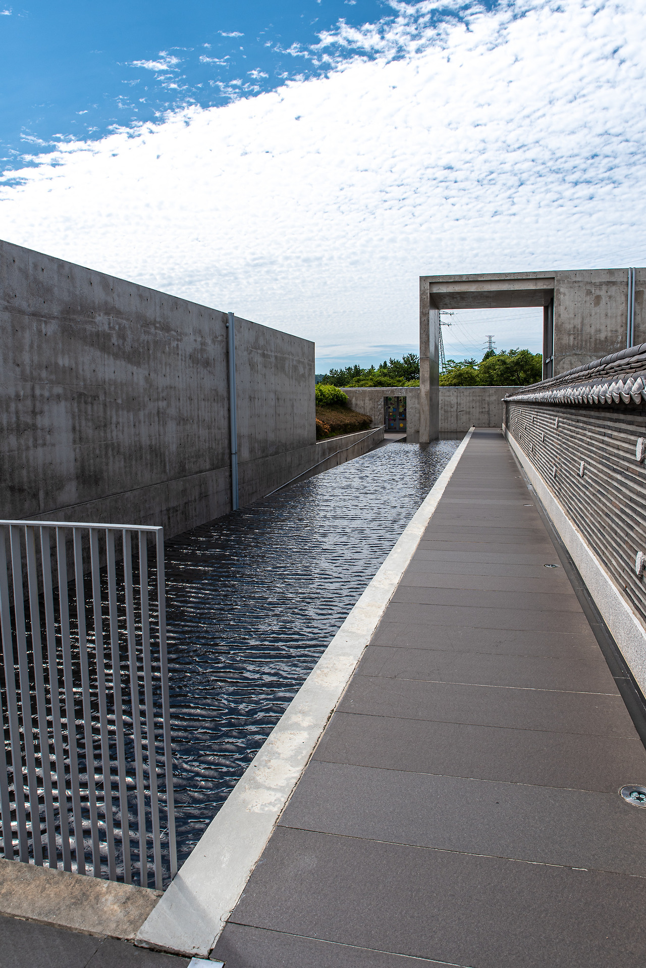 자동문을 열고 나가보면 앞서 지나왔던 물길이 1관 바로 옆에서 다른 형태의 벽면으로 우리를 맞는다. 얼마 전에 새겨졌던 기억이 환기되며 새로움이 덧붙여진다. 그리고 길의 끝 지점을 볼 수 있는 개방성과 원근감은 앞선 건축적 일관성을 유지한다. 반전과 통일감을 동시에 부여하는 탁월한 감각이 아닐 수 없다.