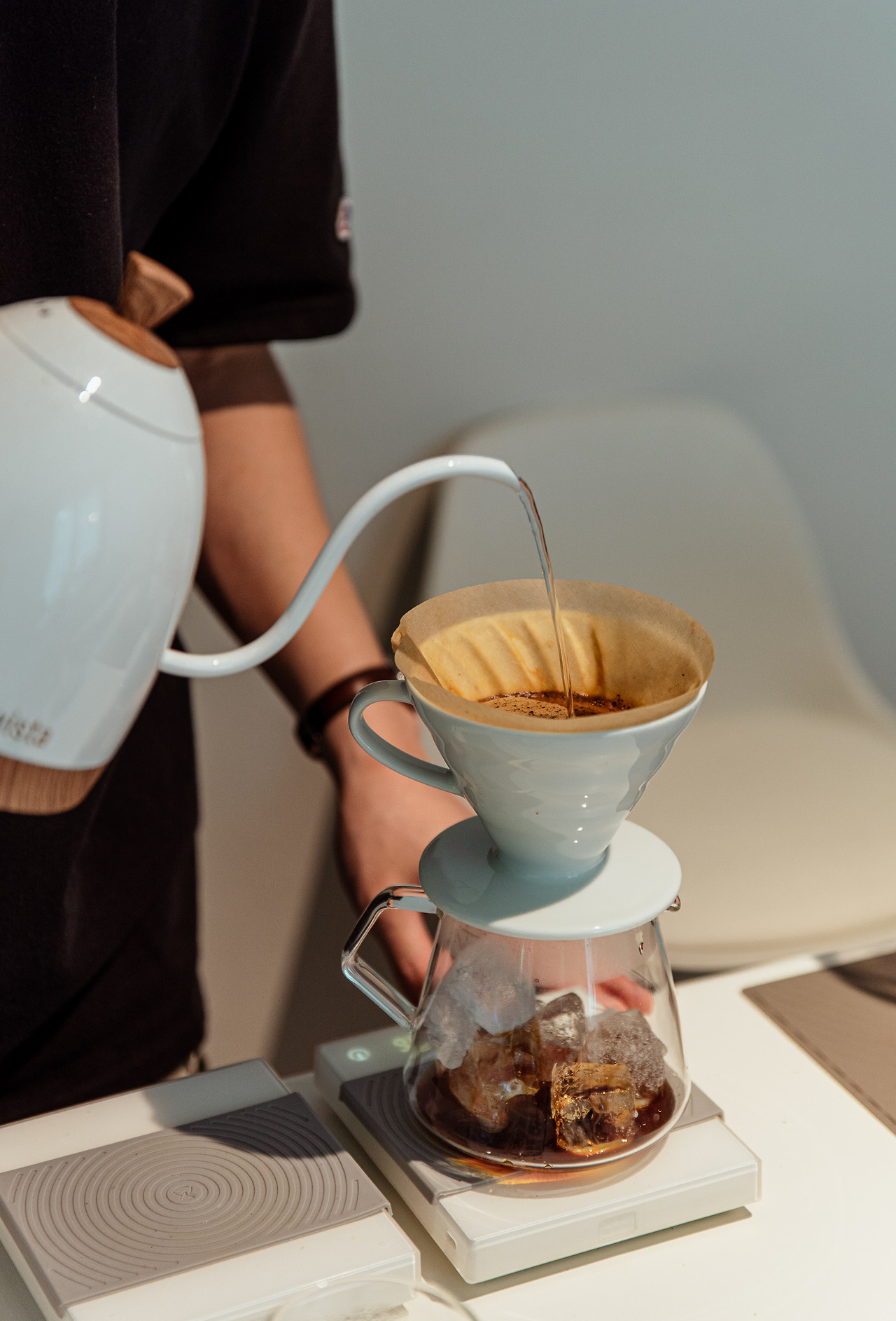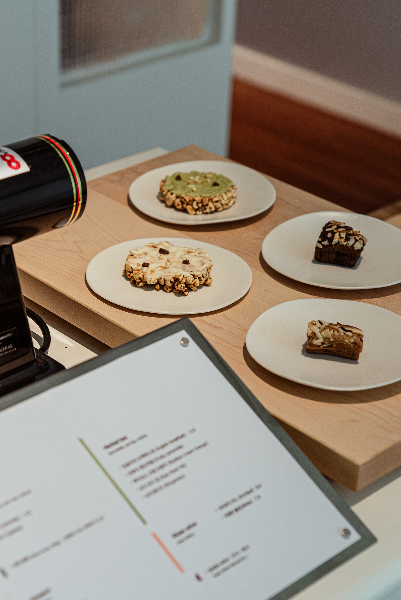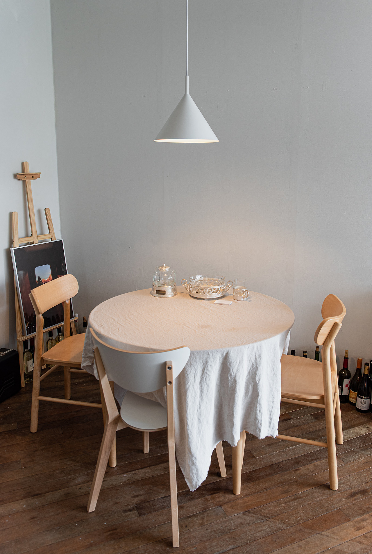 과거 자연광 스튜디오였던 이곳은 내부에 통창이 내어져 있다. 빛을 받아들이는 공간적 특징이 북유럽식의 인테리어와 조화되는 모습이다. 작은 흠집 하나 없을 것 같은 깔끔한 화이트 톤의 내부, 밝은 컬러의 목재 가구들이 산뜻하게 어울린다. 테이블 위에 놓인 잔들 중에서 나의 취향에 맞는 것을 고르면 그에 맞는 음료를 담아준다. 유리잔은 와인, 그 이외의 잔들은 커피 등의 용도로 선택할 수 있다.