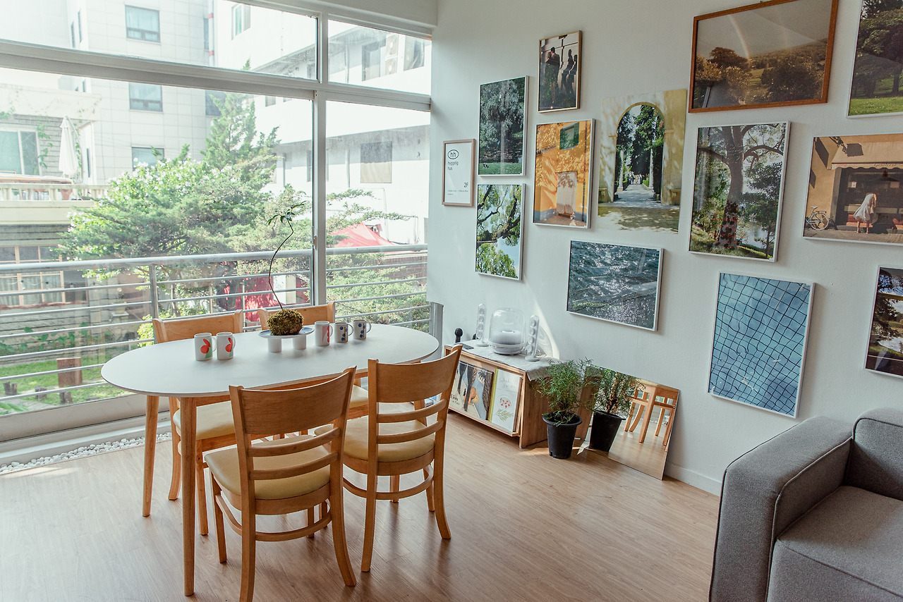 포스터를 가만히 보고 있자니 따스한 햇살이 마음에 퍼지는 듯 편안하다. 먼 곳의 아름다움을 담은 사진이 이곳의 벽에 걸려 우리의 시선과 만난다. 부드러운 자연의 빛을 들이는 이 공간의 모습을 찍어 액자에 거는 상상을 해본다. 그렇게 일상적이었던 순간은 하나의 작품이 된다.
