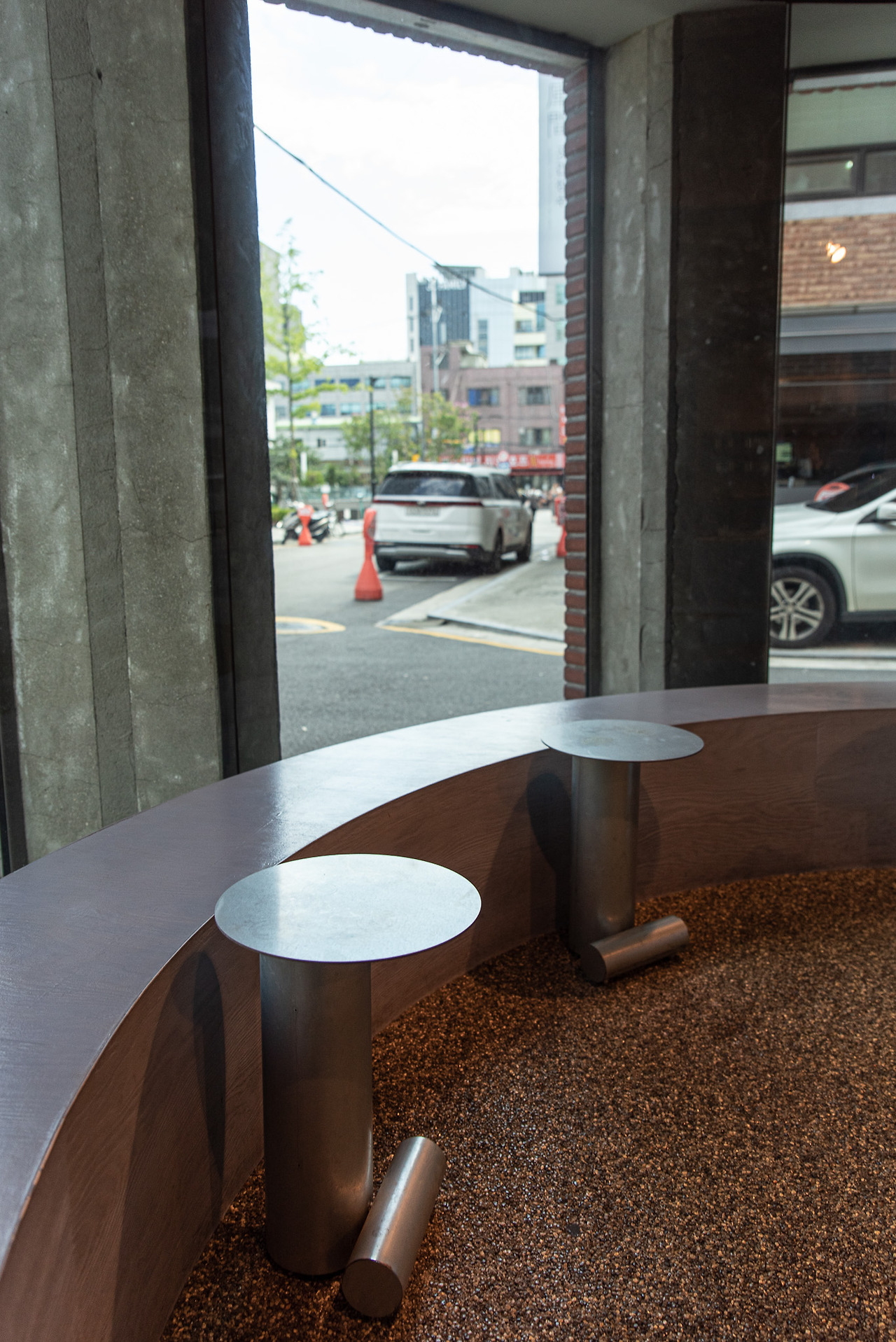 내부에는 클래식이 흘러나온다. 방금까지 들려오던 바깥의 소음은 완전히 이격 된다. 움직이는 사람과 자동차의 모습 위로 음악이 덧입혀진다. 단 하나의 유리창을 사이에 둔 채 현실과 맞닿은 듯 멀어진다. 마치 일상을 주제로 한 영화를 보는 듯하다. 밖의 시간은 바쁘게 흐르지만, 그것을 바라보는 안쪽의 시간은 여유롭다. 같은 일상을 다르게 바라보는 새로운 관점을 얻어간다. 공간적 특색이 경험을 더해주는 순간이다.