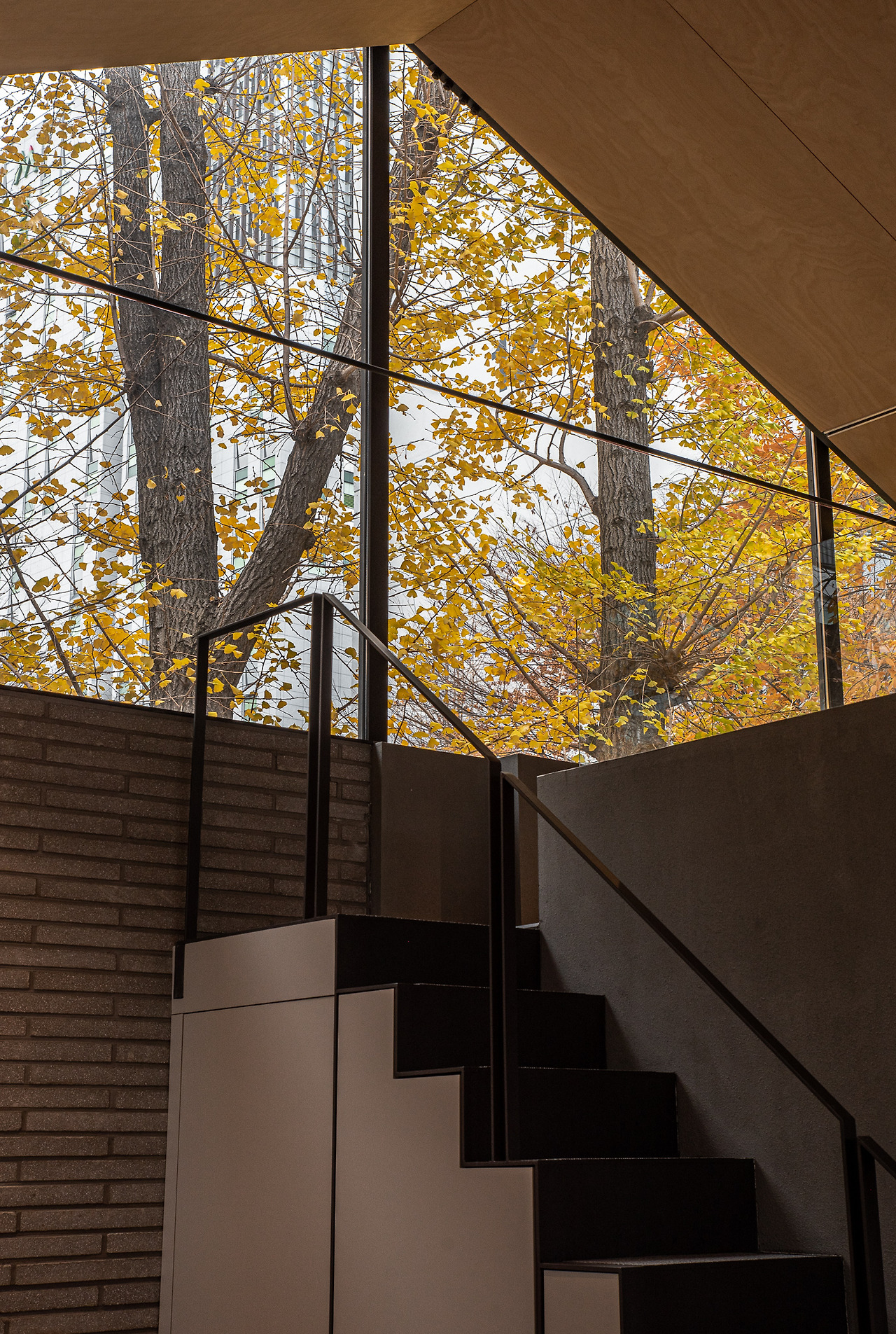 앞서 나무가 보였던 통창 방향으로 계단을 반 층 오르면 숨겨진 다락(Darak)이 나온다. 통기타와 만화책 등 놀이할 수 있는 콘셉트와 아래를 내려다볼 수 있는 다락방의 구조가 흥미롭다. 같은 공간 안에서 층을 나누어 사용자들이 다른 경험을 얻고 즐길 수 있게끔 배려한 것이다.