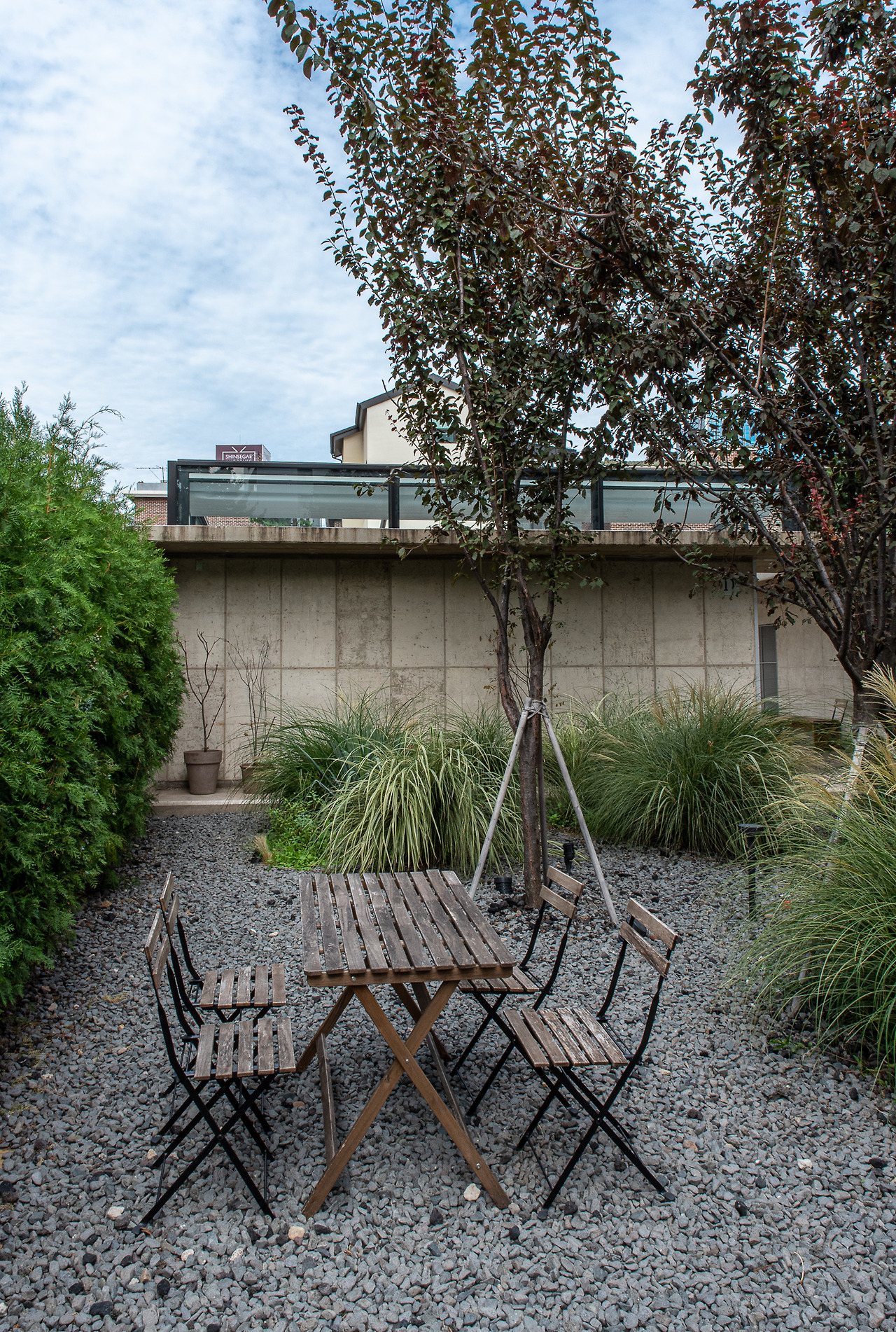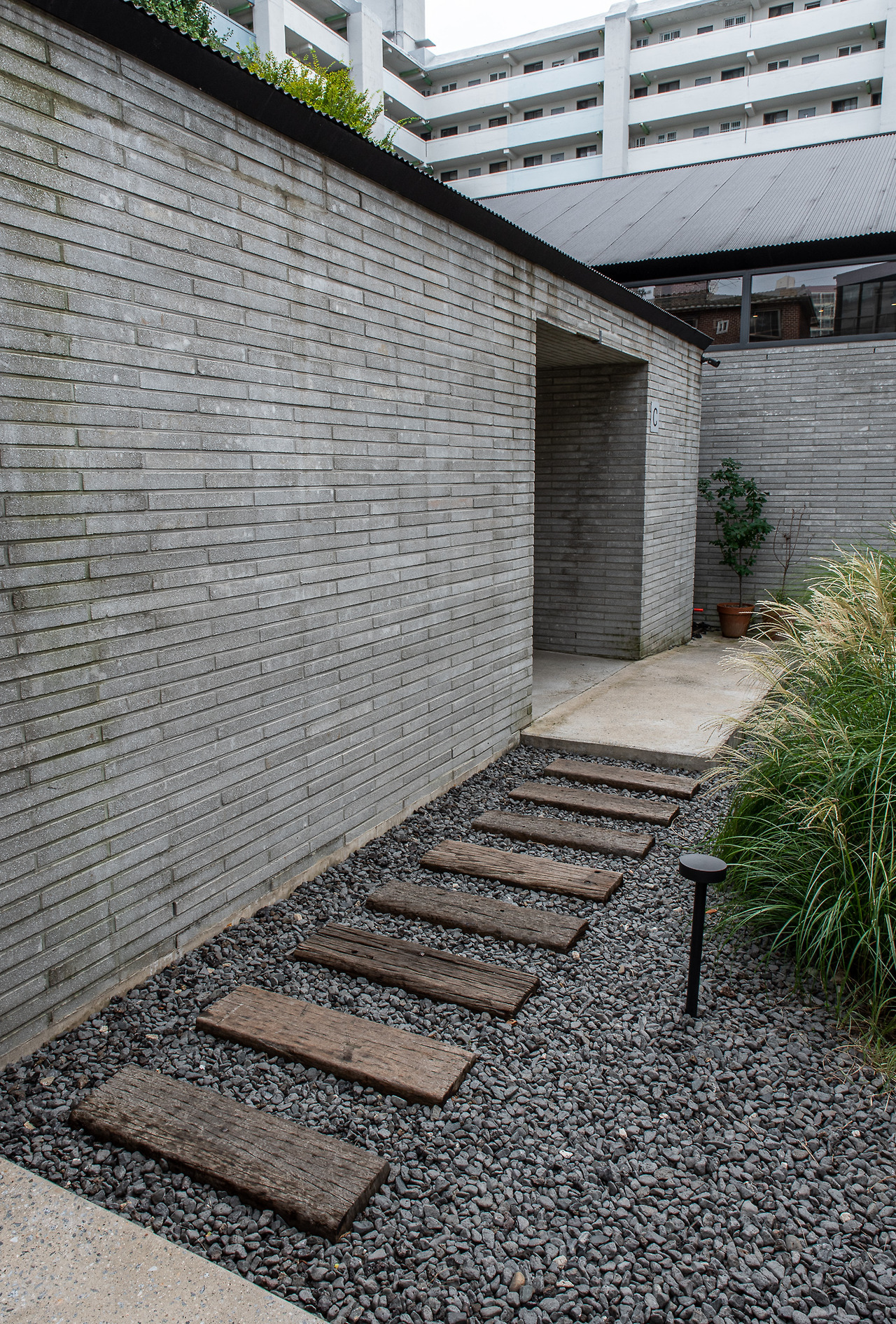 잘 구성된 내부만큼이나 방문자에게 편안함을 전달하는 것은 잘 꾸며진 중정이다. 각 동을 잇는 동선의 중앙에 위치해있고, 하늘을 향해 완벽히 개방되었지만 오히려 프라이빗한 느낌을 준다. 모든 면이 벽과 나무로 둘러진 덕에 외부의 시선이 침투하지 않기 때문이다. 중정의 바깥을 따라 놓인 동선을 천천히 돌며 안쪽의 정원에 시선을 집중된다. 건축적 어법을 느끼는 지점이다.