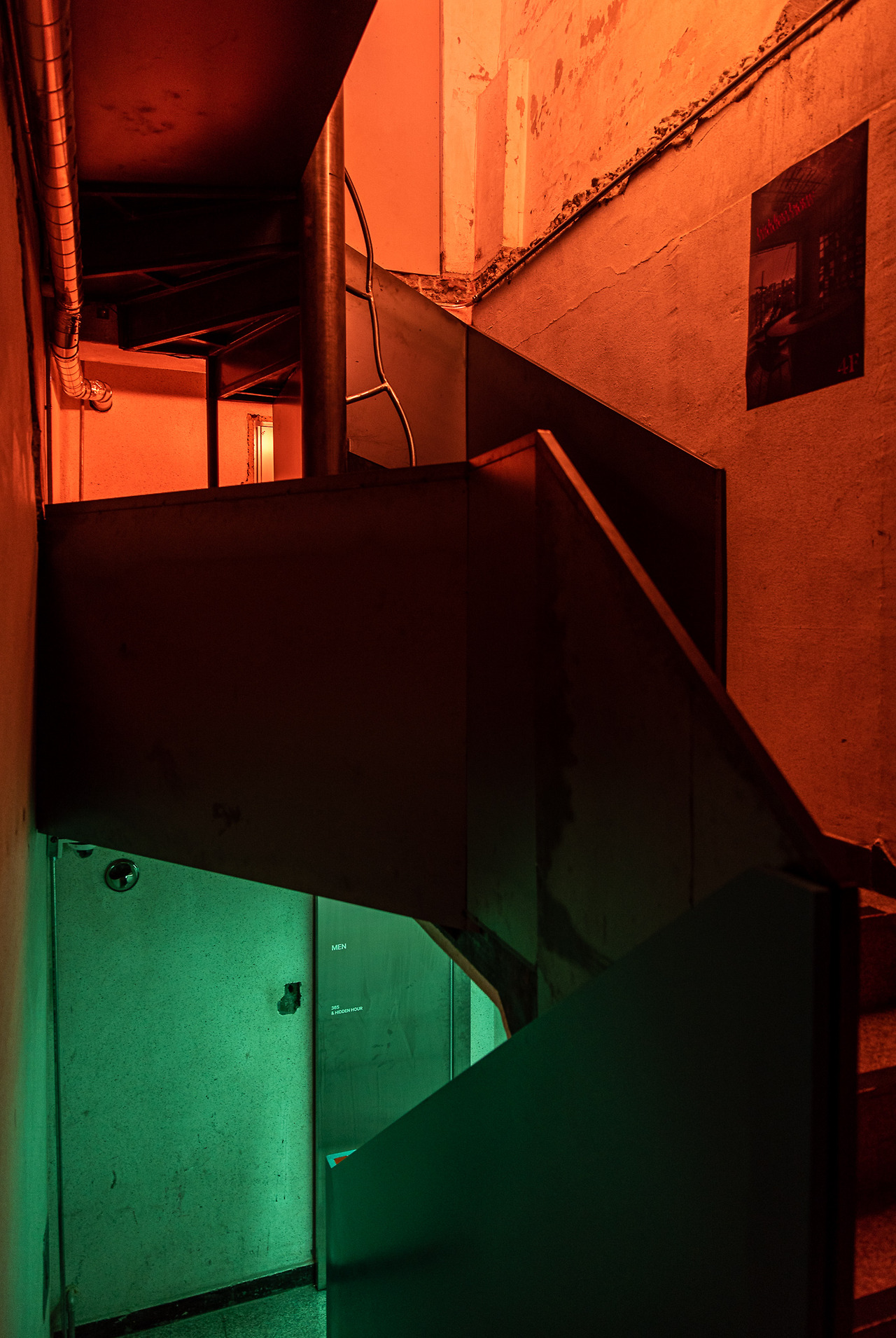 빛과 색이라는 것은 주변의 분위기를 극적으로 변화시켜 우리를 압도할 수 있는 요소이다. 히든아워는 이러한 속성을 잘 이용했다. 1층의 365일장을 대표하던 초록색에서 계단을 오름에 따라 점차 빨간색, 주황색으로 변하는 색채의 변주를 목격한다. 등장할 공간의 특성을 암시하는 듯한 색채의 사용이다.