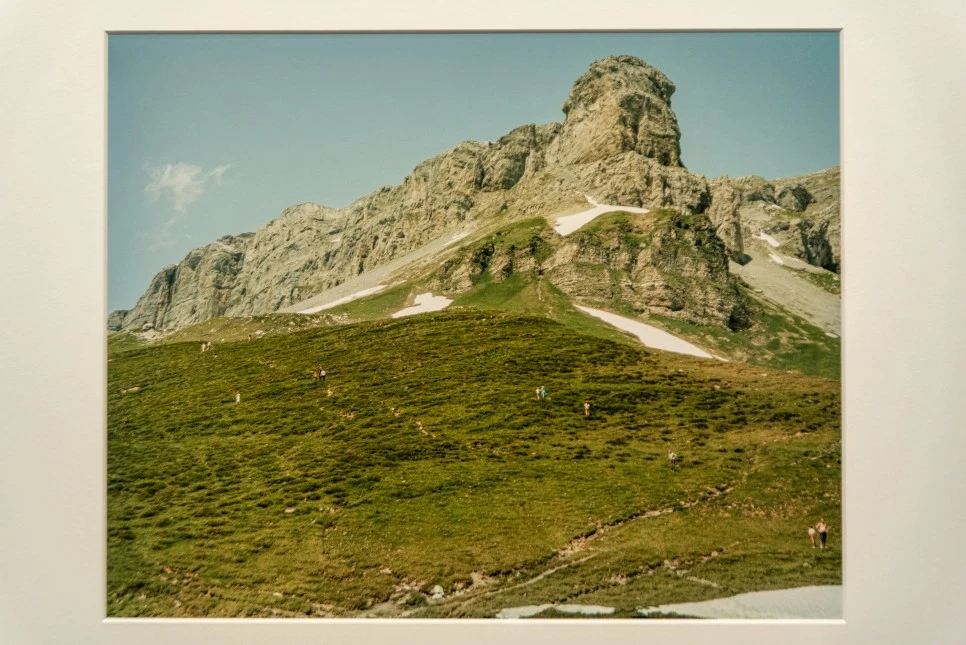 눈에 띄는 것 없이 차분하고 평화로운 산의 모습이다. 하지만 어딘가 특별하고 낯선 부분은 다음과 같은 요소들에 있다. 저렇게 높은 돌산을 올려다보는 위치에서 찍는다면 산의 언덕이 보다 쏟아질 듯 표현되고 돌의 꼭짓점은 드높게 솟아 있어야 한다. 그러나 공중을 비행하며 찍은 듯 험준한 산세는 마치 평지와 같이 표현되고 있다.