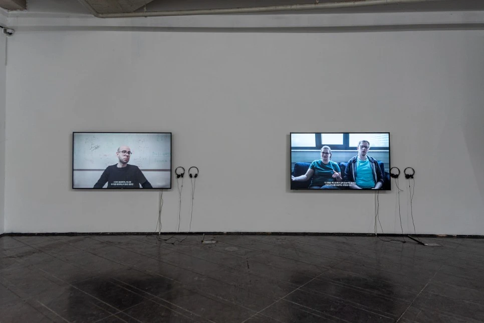 모니터에는 정보들이 숫자로 보이고, 카운터가 특정 숫자에 도달하면 음파가 생성된다. 음파가 유인원의 움직임을 만들어내고, 우리의 귀로 들어오는 사운드로 방출된다. 특히 해당 소리는 AI 딥페이크 기술을 이용해 유인원의 울음소리를 학습한 것이다.