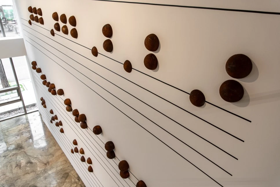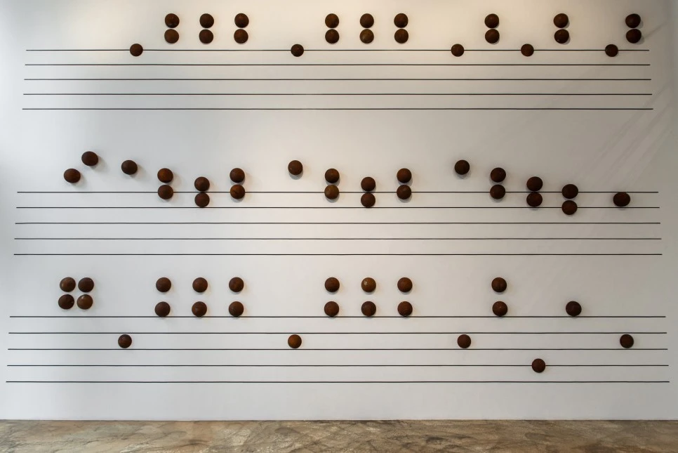 앞서 작가는 소리를 탐구하는 사람이라고 했다. 그러나 각 작품들에서 소리가 나는 것은 아니다. 작가는 음성이라는 속성이 담긴 사물들을 시각적으로 엮어내는 방식을 택했다. 따라서 감상자는 청각적 요소를 시각이라는 감각을 통해 관계하는 새로운 방식을 체험하게 된다. 사물에 음악을 부여하는 작가의 방식이 개성적으로 드러나는 지점이다.