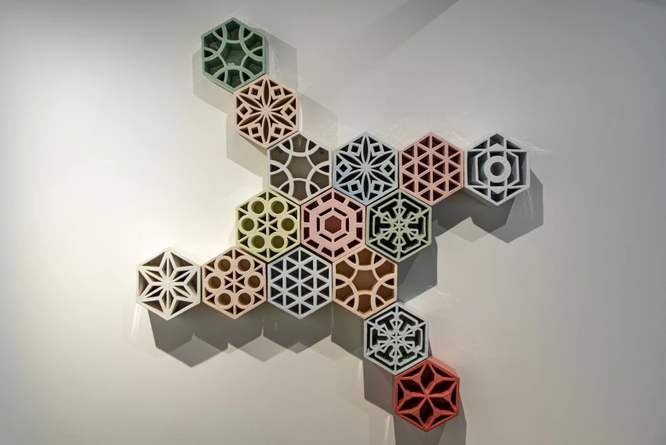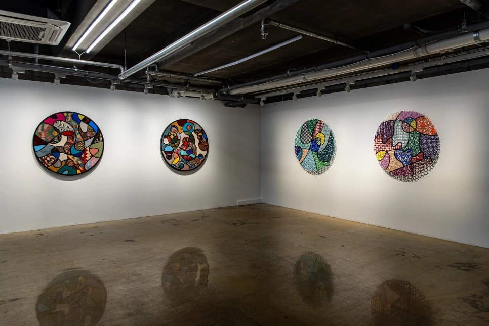 다양한 문화를 조합한 작품이다. 건축 양식, 전통 문양, 동물의 발자국 등을 참조했다. 그러한 요소들을 패브릭, 세라믹, 알루미늄 등의 재료에 녹여내고 콜라주 하여 하나의 원형으로 표현한 것이다. 셀 수 없이 많은 문화적 요소와 생명 등이 섞이고 공존하는 현재를 유연한 원의 속성에 빗대어 작품화했다. 각 요소들의 복잡하고 아름다운 관계와 대비를 확인할 수 있다.