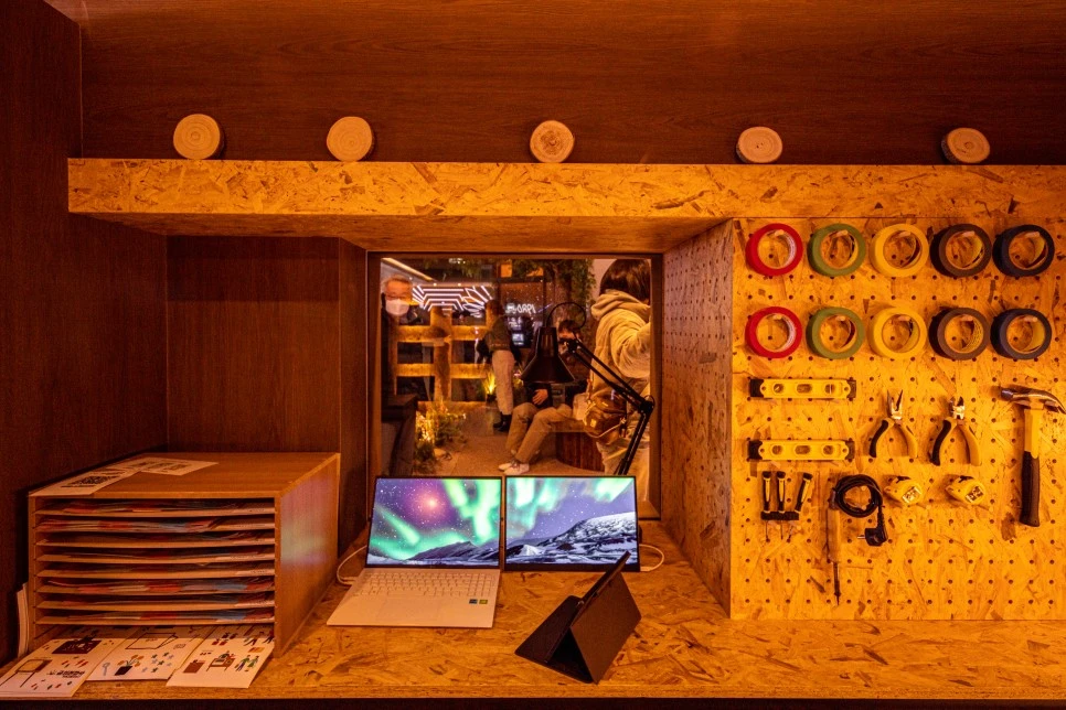 스타벅스 1960점에 들어가기 전, 소개해야 할 문화 콘텐츠가 있다. 스타벅스코리아와 LG전자가 협업하여 다양한 체험 부스를 마련한 것이다. 건물 내부에 '금성전파사 새로고침센터'를 만든 것이다. LG의 옛 이름인 금성과 시장의 옛 특성이 조화되도록 의도했다.