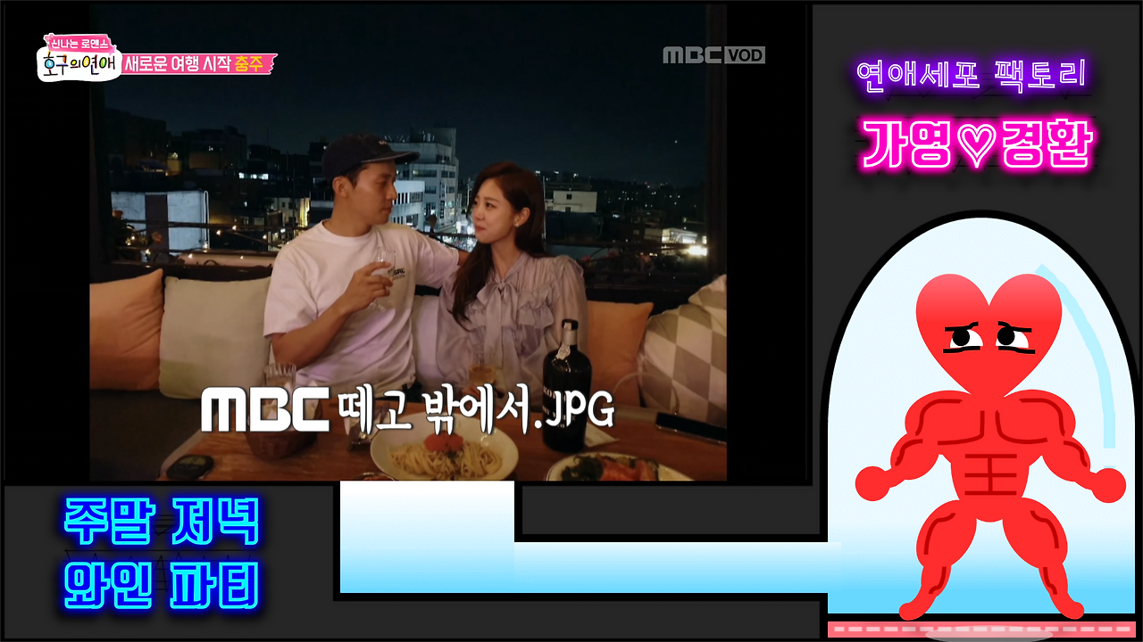 MBC entertainment 유튜브 채널 <[엠씽크ON] 당신의 잠든 연애세포를 깨워 드립니다 l 호구의연애>한편, 비교적 빠른 사랑의 진전을 보여주고 있는 경환♡가영 커플!