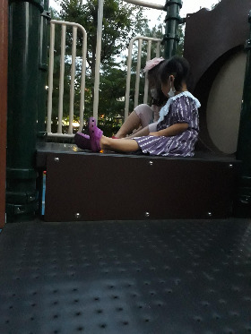 언니의 야광 샌들이 있어서 미끄럼틀이 하나도 깜깜하지 않았다고 말하는 아이 앞에서,