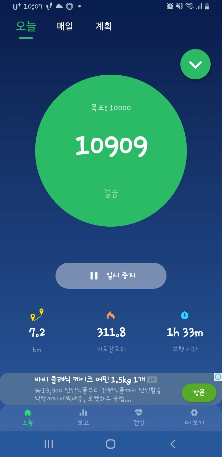 만보를 넘긴 기록이 오늘 넘친 나의 활력을 말해주는 듯하다.