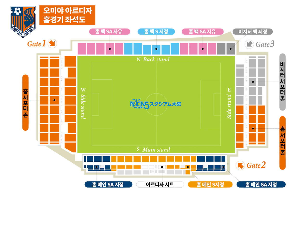 경기장 명칭 : NACK5 스타디움 오미야 (NACK5 Stadium Omiya, NACK5 スタジアム大宮 )