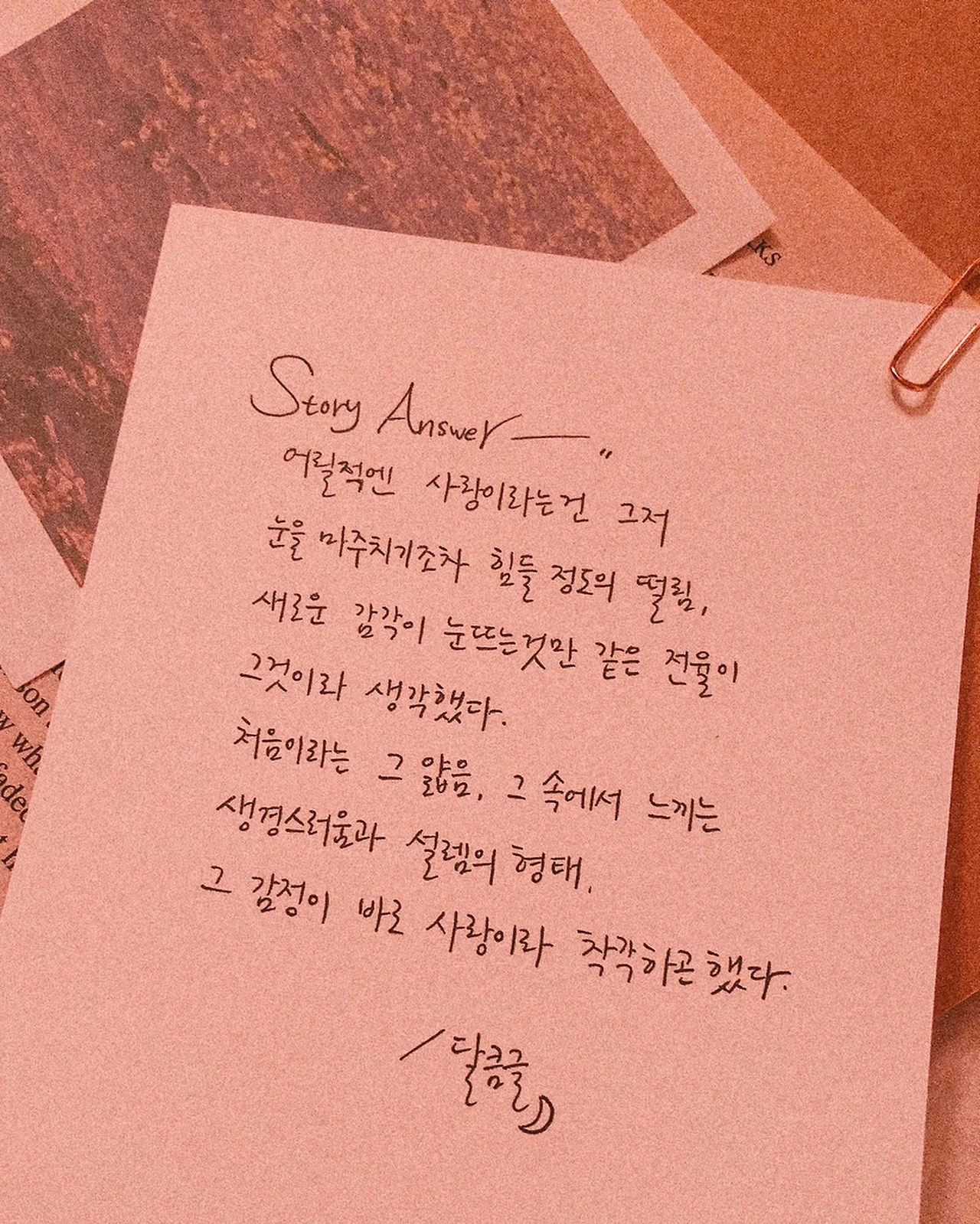 또 누군가 사랑을 아직 겪어보지 못해 사랑의 글이 공감되지 않을 땐 어찌하느냐 물었다. 나는 당신의 그 미지가 참 사랑스럽다고 대답하고 싶다. 그 출발선 뒤에 아직 한 발 물러서 있는 그 공간이, 아직 겪어보지 못한 미지의 세계를 탐방할 당신의 무경험이 조금은 부럽다고. 누군가를 새로 알게 되고, 갑자기 괜히 궁금해지고, 새벽 내내 그 한 사람의 생각으로 지새우고, 조금은 헛헛함에 한숨이 나오기도 하며, 어쩌다 그 사람과 가까워지고 있는 내 속도를 발견할 때면 괜히 짜릿해지기도 하는. 내 모든 우주가 그 사람으로 기울고 휘어버리는 그 과정이 얼마나 재미있고 형용할 수 없는 소중함인지 아는 사람으로서. 그 모든 미지가 아직 당신의 앞에 잠들어 있다는 게. 사랑의 형태는 각기 달라 나와 당신의 느낌이 완전히 같진 않더라도 조금씩 내 글의 속뜻을 알아가게 될, 공감하게 될, 당신의 그 미래의 세계를 나는 동경해한다. 부디 보다 더 풋풋하고 새큼하며 조금은 애틋하고 아릿한 그런 처음의 생경스러움이 곧 당신에게 찾아가기를. 나에겐 삶을 살아가게 하는 원동력이 되기도 하는 그 순간이 당신 앞에 펼쳐지기를.