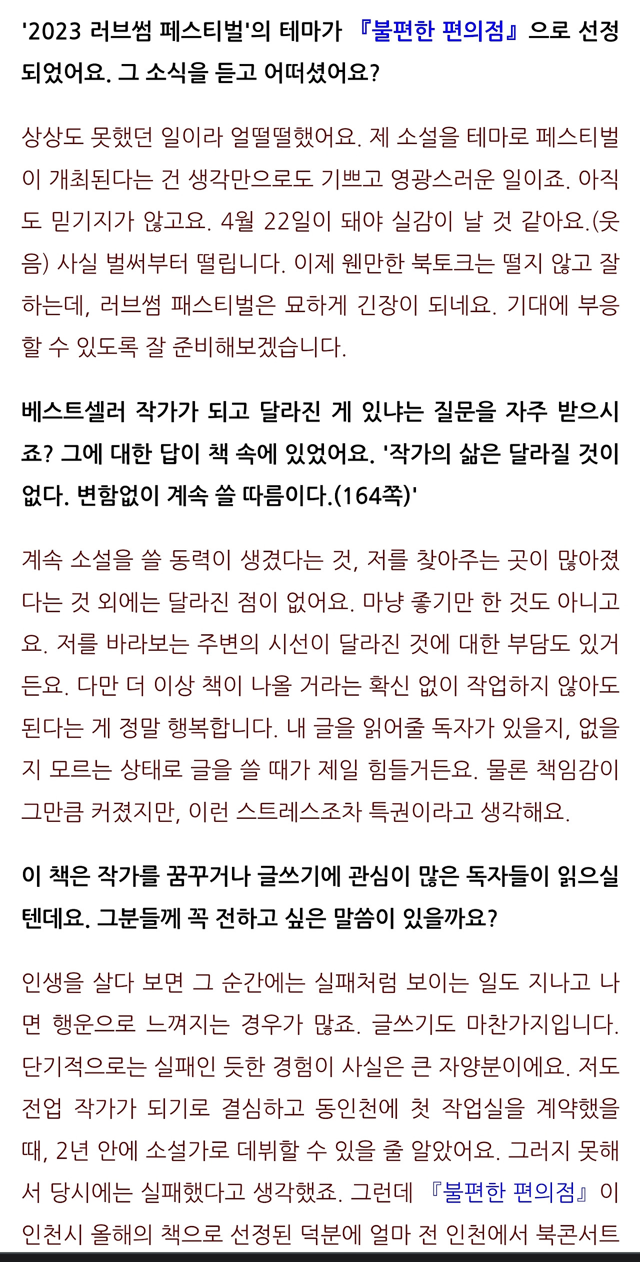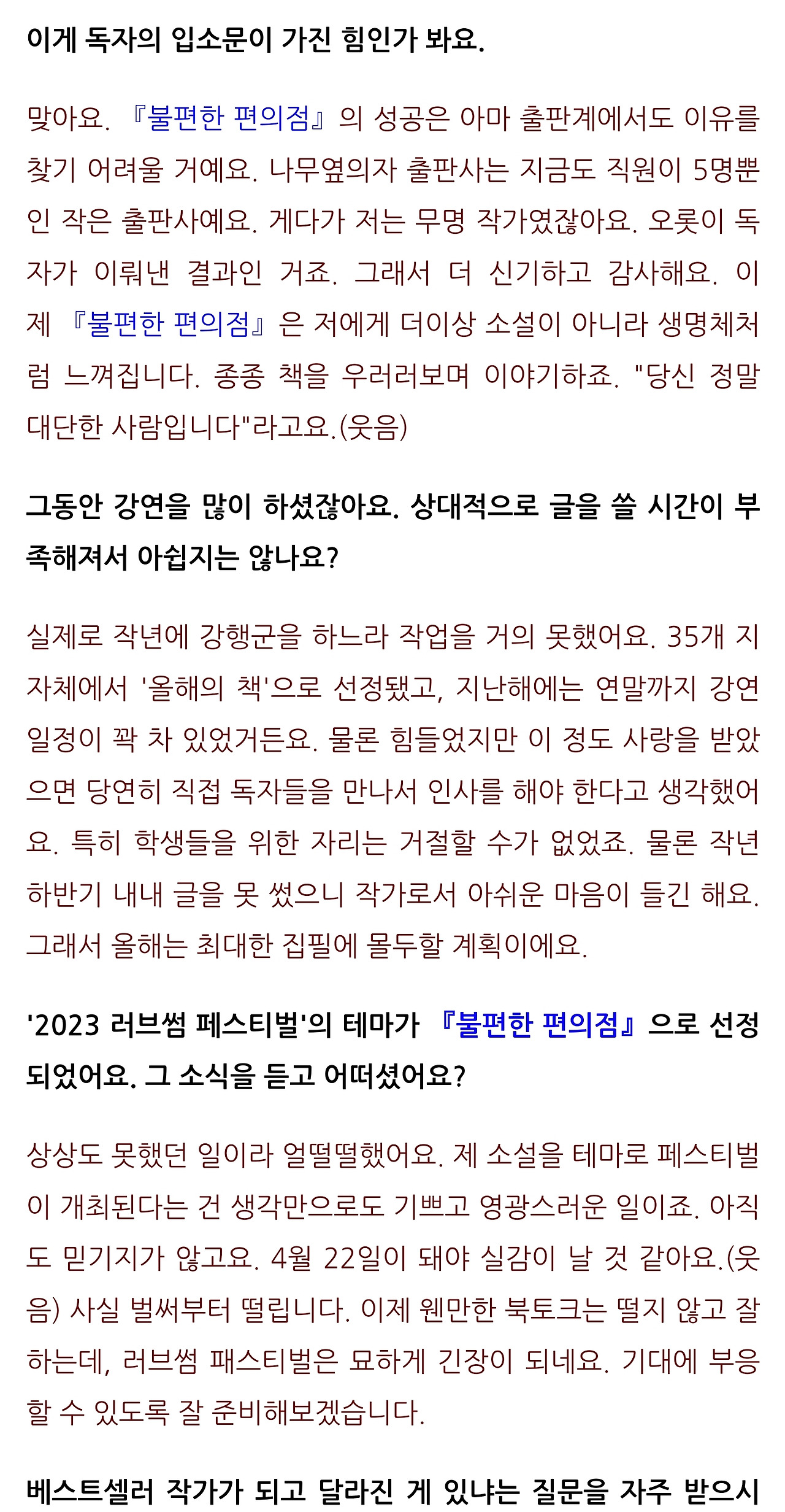 인터뷰 기사는 사실 책을 두 권 다 읽고 나서야 접했고, 잘 될 걸 예상하지 못하고 크게 성공한 작품이라는 드라마틱한 일을 알게 됐다.