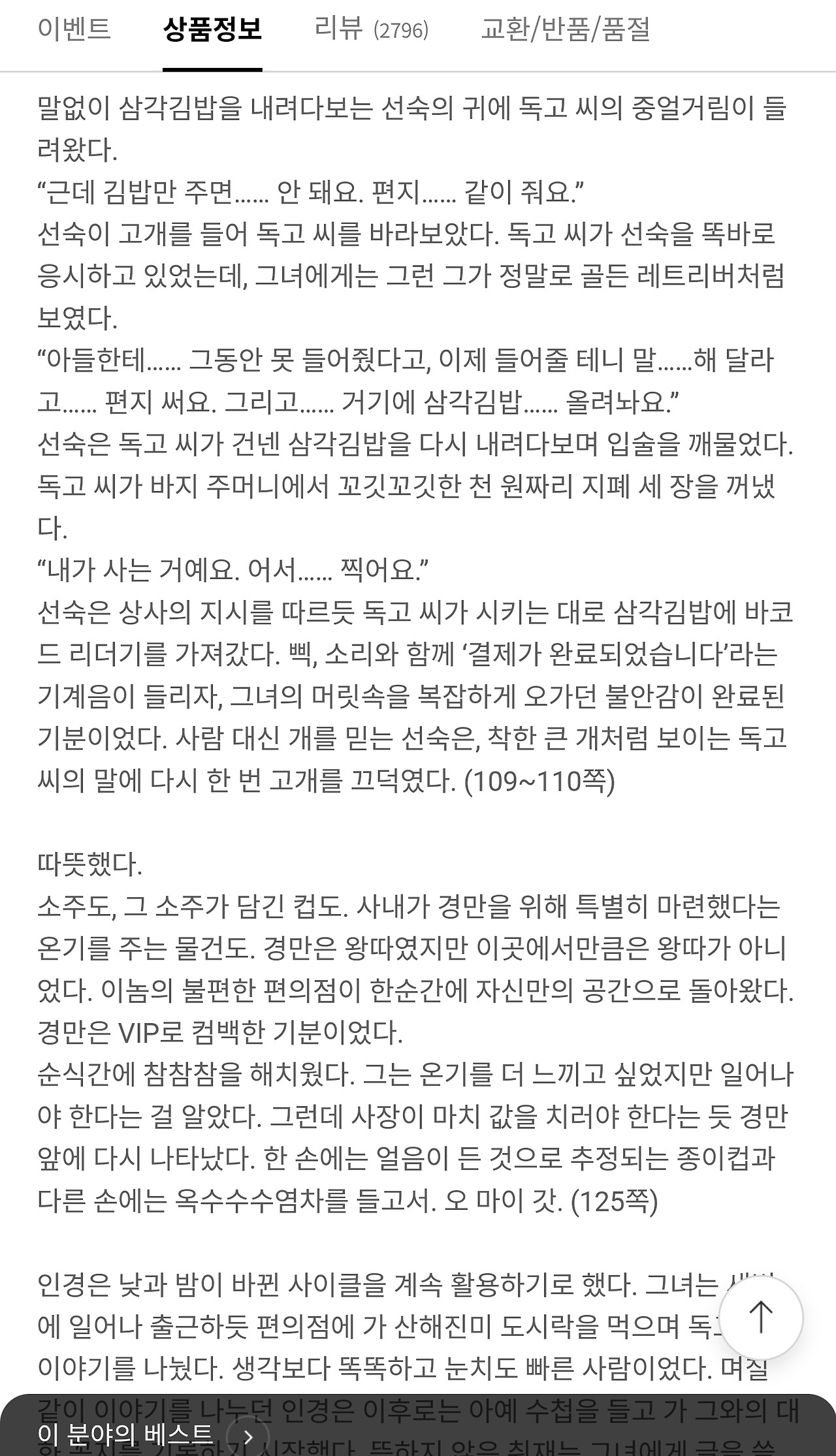 어느 출판사에서 출간할지 미정인 채로 완성, 정 안 되면 브런치로 공개하려고 했던 작품이라고 하신 김호연 작가님의 인터뷰 글을 봤다.