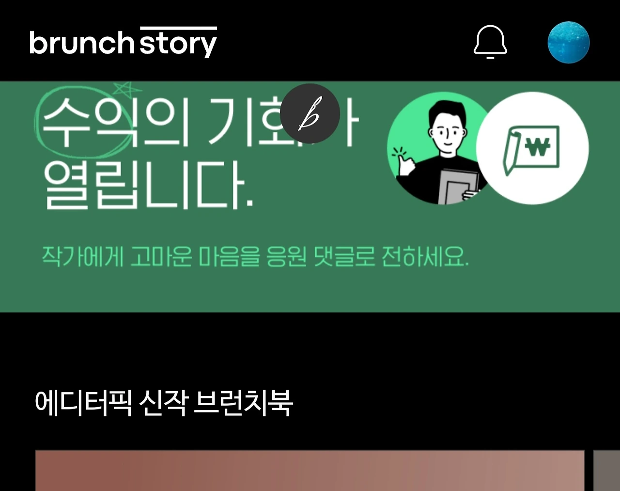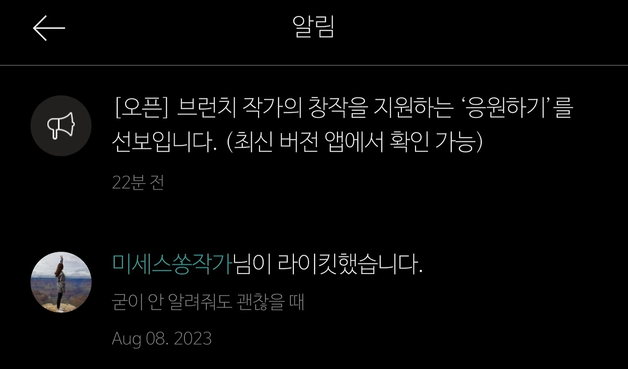 그 무엇에도 크게 기대를 하지 않고 있다가, 예고 공지를 보고 기대감이 잔뜩 커졌는데, 사실 애초에 브런치에 바라는 게 없는 입장이어서 다시 제로로 수렴한 상태다.