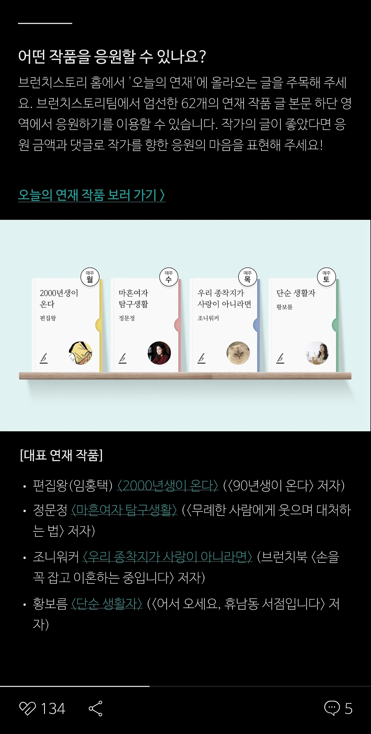이럴 거면 차라리 그 작가님의 책을 사서 읽고, 내 브런치에 소감을 남겨드리는 지원이 낫지 않을까 개인적인 생각이 들었고, 밀어드리고 싶은 브런치 작가님들 응원은 제 나름대로 다른 방법으로 할게요 :)