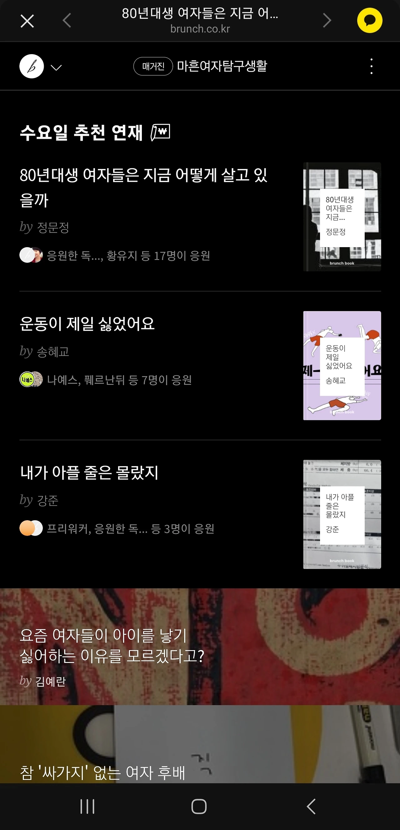 분야를 당연히 고민없이 아무렇게나 지정하신 건 아니겠지만, 이렇게 된 이유에는 애초에 글 발행할 때 자유 입력 없이 마땅한 것을 고르기가 참 어렵게 주어지는 브런치 태그 후보가 준 제약도 한 몫힐지 않았을까 한번 생각해 보기도 했다.