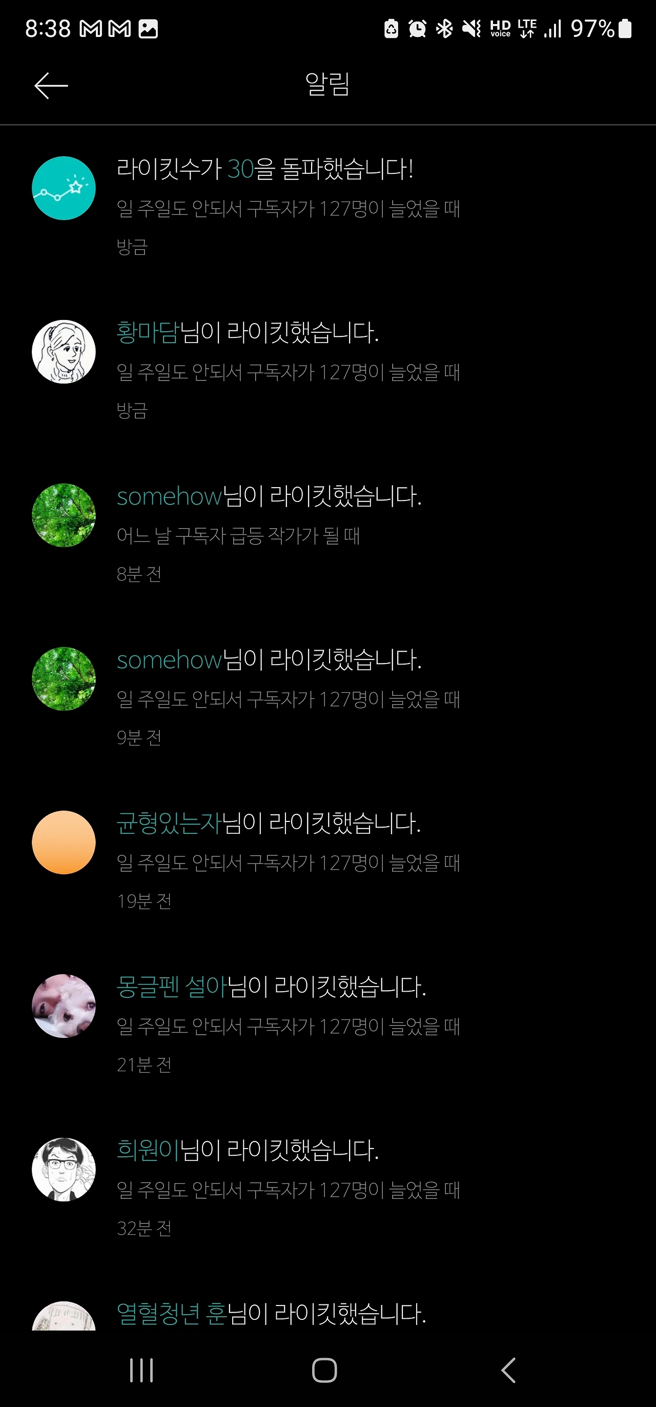 이 곳이 세상에서 글을 쓸 수 있는 유일한 곳도 아니고 당연히 전부도 아니지만, 내 기준에는 이 곳에 모인 작가님들 커뮤니티 파워가 마음에 들고 꽤나 끌린다.