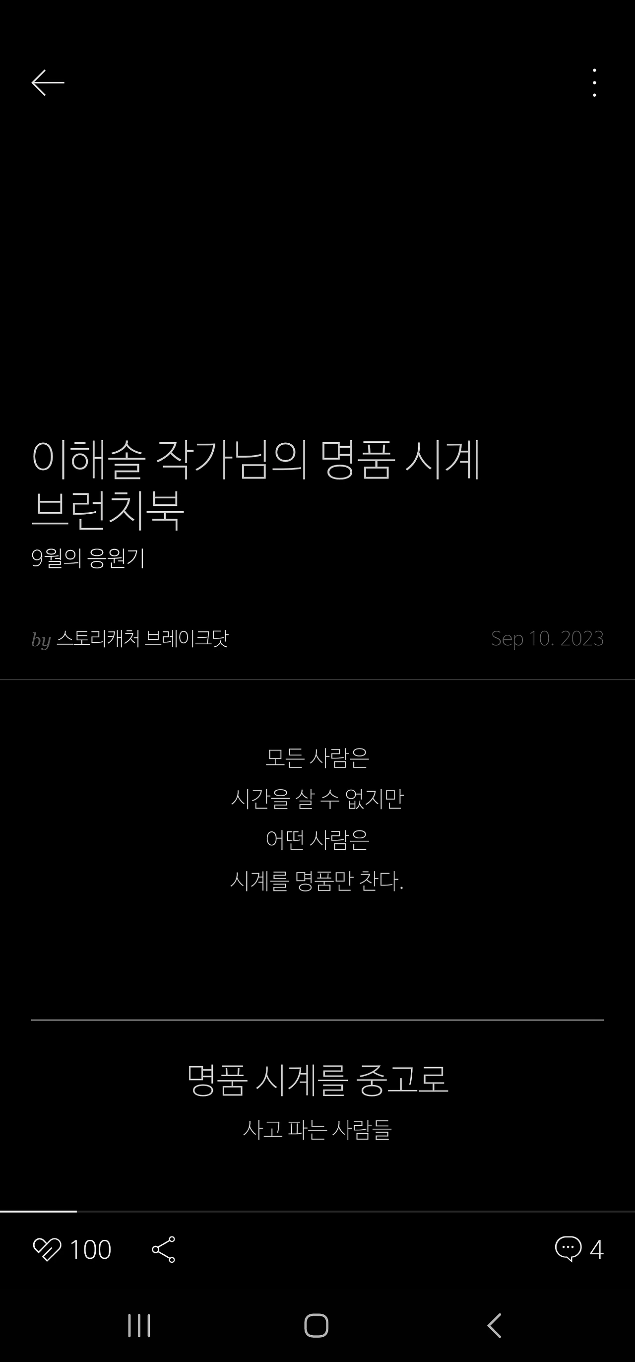 구독중인 브런치작가님의 브런치북 응원하기 지난 글이 아이 라이킷 좋아요 100을 달성했다.
