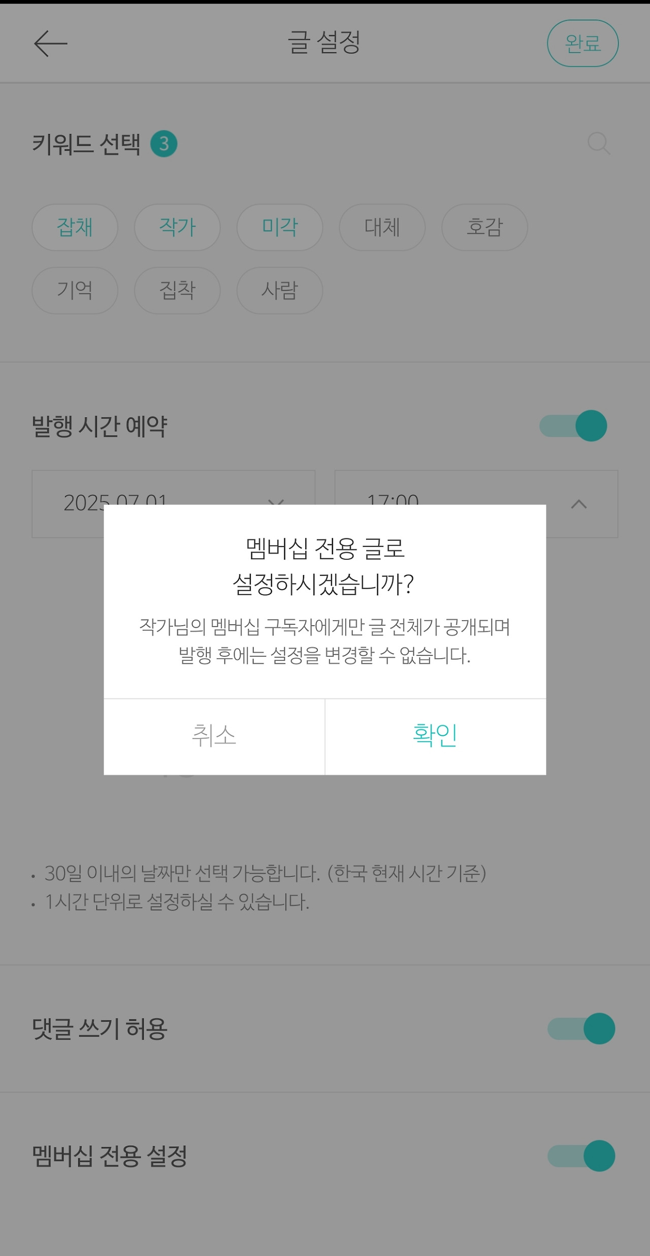 * 멤버십 등록 완료, 멤버십 글 발행 시작 25.7.1