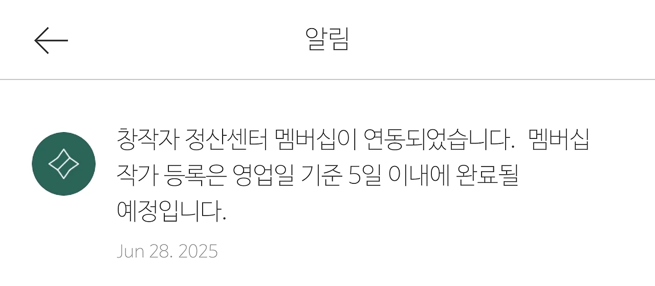 * 창작자 정산센터 제대로 연동하고 멤버십 등록 완료 25.6.28