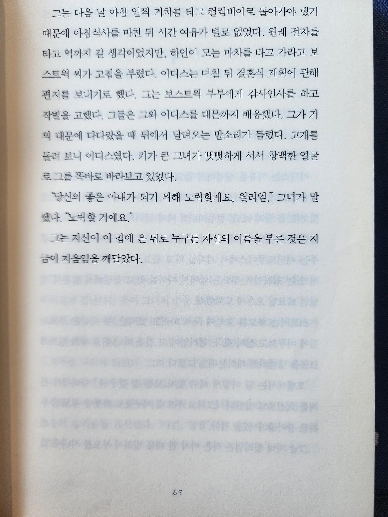 이디스 없이 스토너와 이디스의 아버지 어머니의 대화 장면 뒤에 이어지는 내용입니다. 부모님 입장에서 참 귀한 외동 딸이지만, '부인감'으로 두고 객관적인 시선으로 볼 때 여러 가지 처한 상황상 더 좋은 조건의 가문에서 데려갈 가능성이 사실은 거의 없어 보여서, 가진 것 없고 뻔한 월급과 가난이 예상되는 '스토너'가 그리 탐탁치는 않지만 결혼이 매우 급하게 대충 성사된 것처럼 느껴졌어요.
