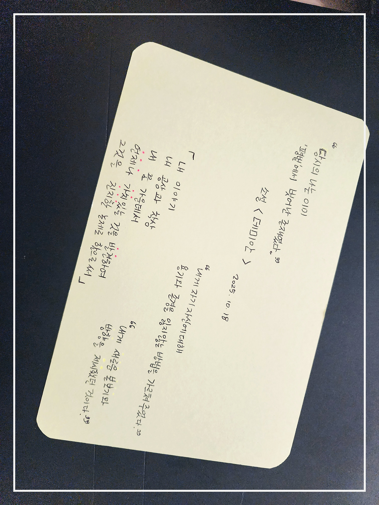 글을 욕심만큼 많이 쓰지는 못했지만, 다독이라도 해서 다행입니다. 독서든 운동이든 좋은 말을 주변 사람에게 들려줬든 소소하고 사소하고 하찮게 여겨질 법한 작은 그 무엇이라도, 상상만으로도 행복하게 나다운 꿈을 꾸고, 성실하게 반복한 하루 하루 실행의 누적으로 보람찬 한 해를 결산하며 약간이라도 플러스로 만들어 놓은 건 부러 꺼내 기록해보며 뿌듯한 2025년 마무리 하시길 바랄게요.