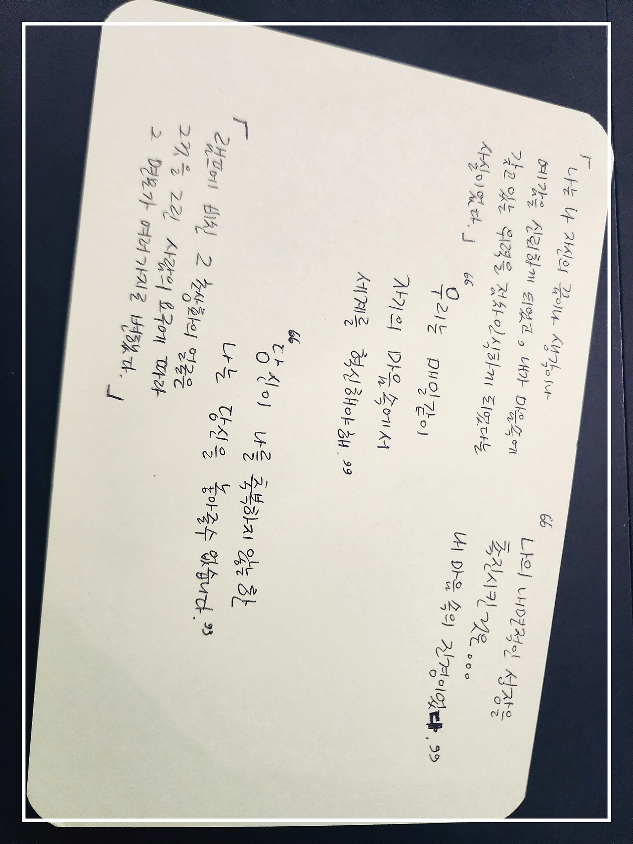 어떤 분야에 몸담고 있으면 책이나 철학도 문학과도 아예 거리가 멀 것이라고 생각하는 것도 선입견이죠. 덕업일치는 드물고 대체로는 많이들 생계용 업과 내 안의 꿈을 분리해서 살아요. 일터, 취미 공간 내가 접속하는 진입 지점에 맞게 내 안에 도사리고 있는 각각 다른 자기의 모습을 꺼내니까요.